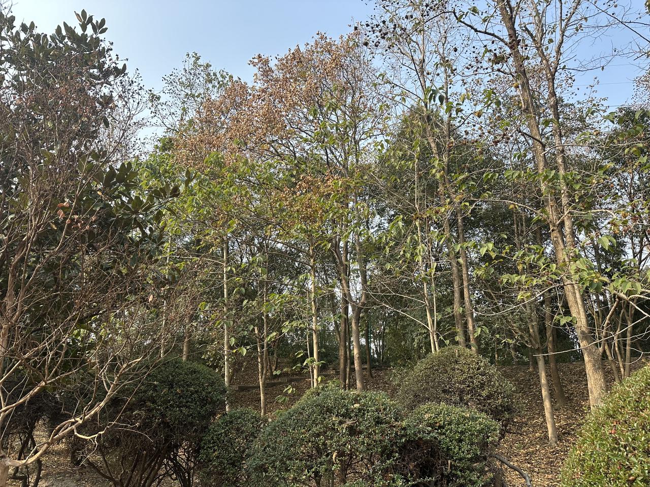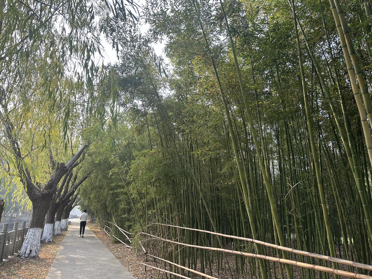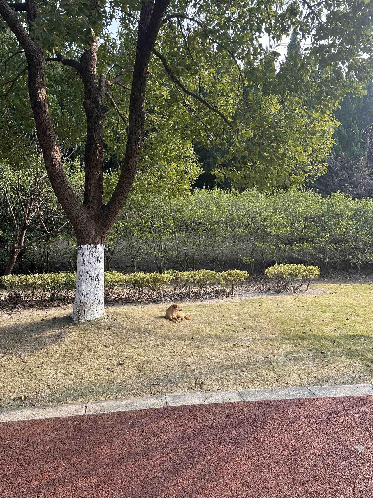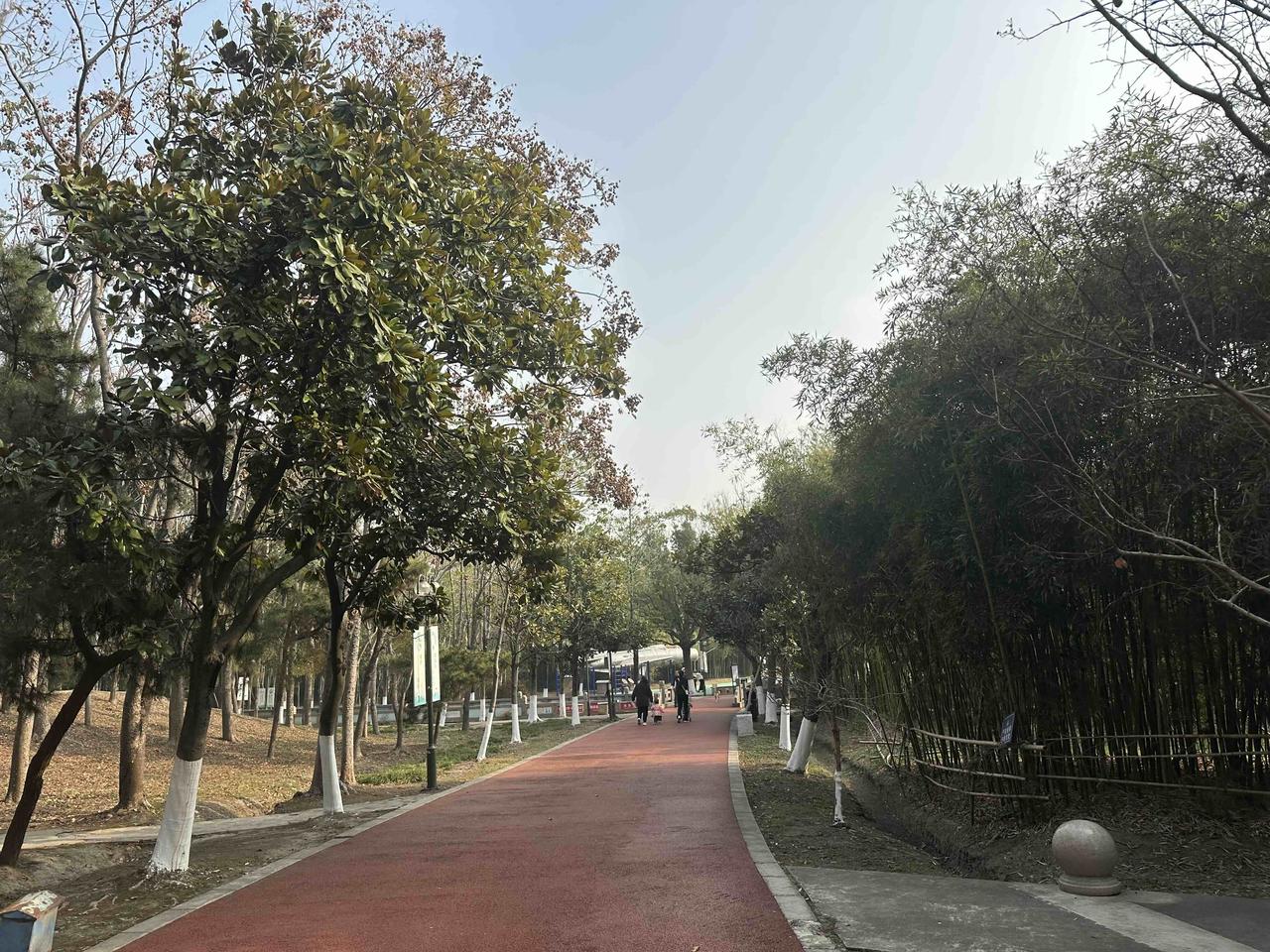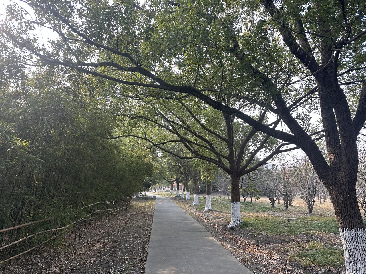 每日公园晨练打卡 冬日的阳光穿过枝叶的缝隙,在脚下铺出斑驳的光影。我循着湖畔的步道慢行,身旁是高大的香樟,树干被涂了白石灰,整齐地列队向远方延伸,像守着湖岸的卫士。 拐过弯,一片竹林忽然撞入眼帘。青竹修长挺拔,竹叶在微风里轻轻摇曳,发出细碎的沙沙声,仿佛在说着悄悄话。阳光透过竹影筛下来,落在铺满枯叶的地面,添了几分清幽。再往前走,红棕色的塑胶步道旁,灌木修剪得整整齐齐,两只小狗在树下的草地和步道上晒太阳,懒洋洋的模样,让这冬日的午后更添了几分闲适。 公园湖畔的树影、幽深的竹林、安静的步道,还有那两只贪暖的小狗,都成了这趟散步里温柔的点缀。原来冬日的美好,就藏在这些不疾不徐的林间光景里。公园 晨练