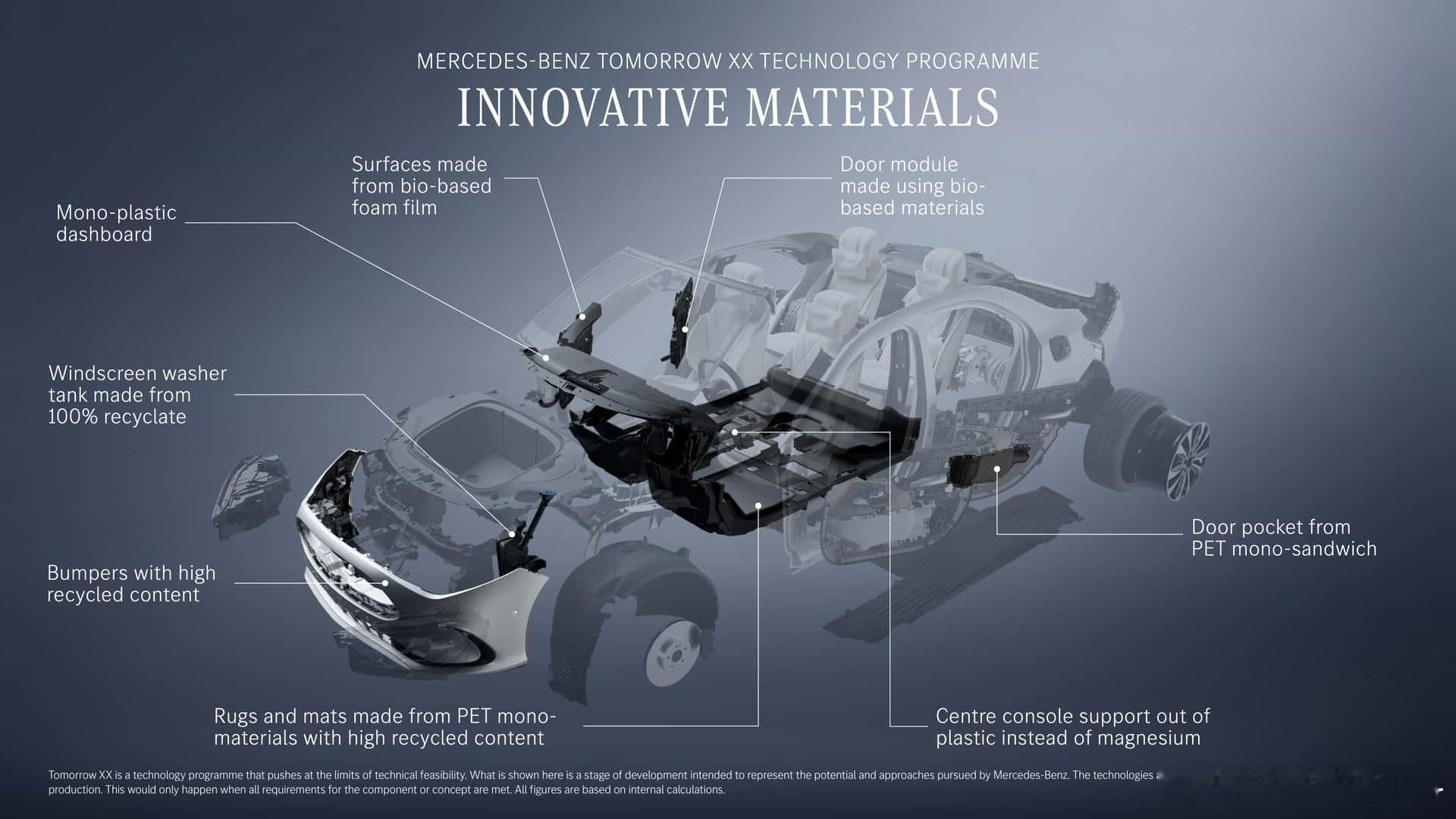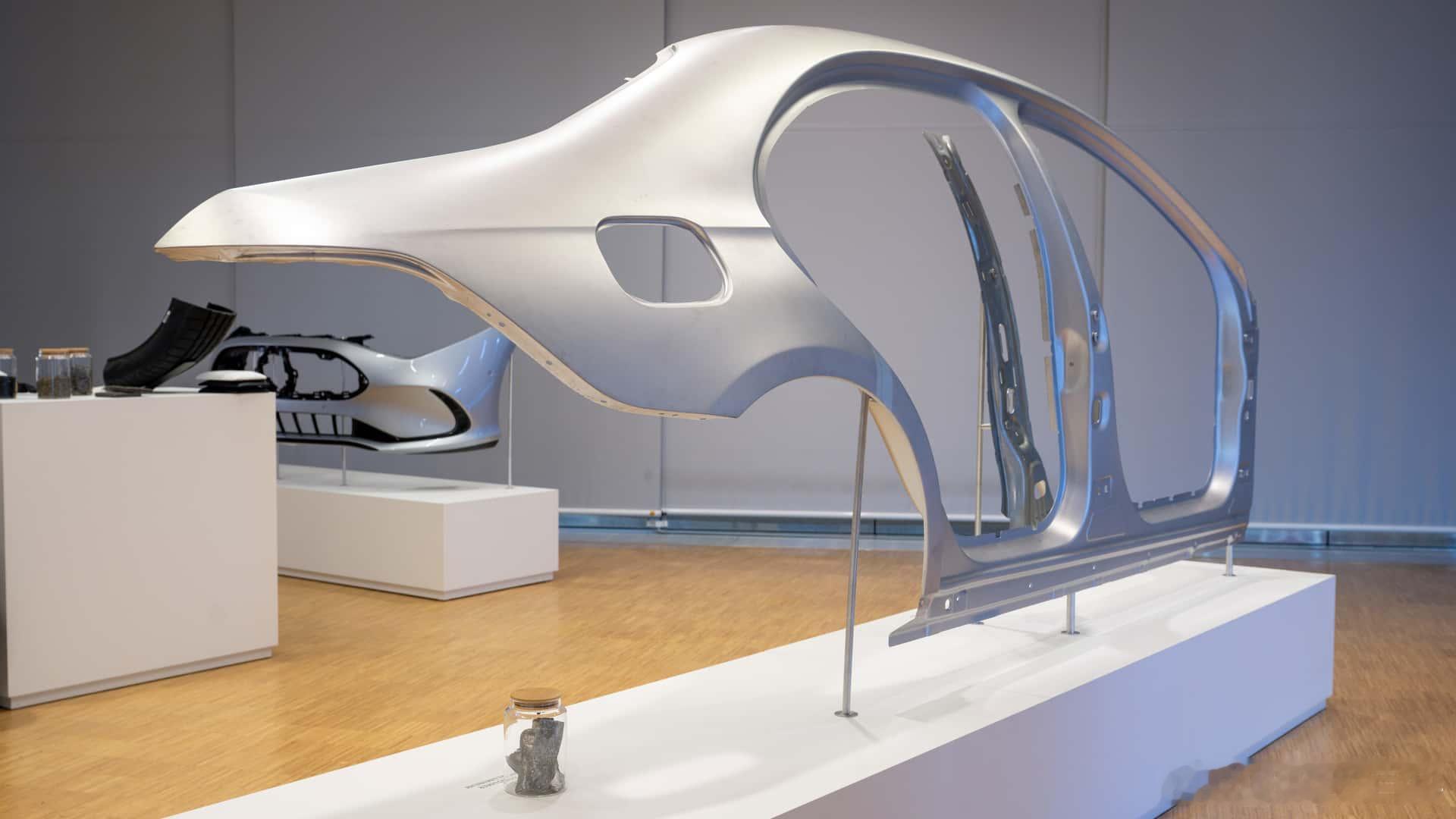 继主打高效电动化的Vision EQXX、主打高性能电动化的AMG GT XX之后,奔驰 发布了第三款XX作品——Tomorrow XX之所以是作品,而不是产品,因为它不是一台车,而是效仿爆炸图设计的装置艺术,把一台车上的零部件全部打散,目的是为了展示循环发展的设计理念举个例子,奔驰任何现在的大灯依赖胶水固定,并且有很多零碎的零部件,导致后期维修非常困难,而Tomorrow XX的大灯使用螺丝固定灯组零部件,灯组损坏后只需针对性更换零部件即可,而不是直接换整套灯组除了降低维修成本,还能进行精细化的回收再利用,进一步降低报废后处理的碳排放奔驰还打算将已经使用的安全气囊回炉再加工,用于生产发动机支架和气门壳体;废弃的轮胎纤维,可以用于生产减震器零部件;内饰的塑料材质从常规物料专为回收PET之后,重量更轻的同时,还能再度报废回收,用于生产底盘护板,甚至是人造革的基础材质面对环保组织对动物真皮的抵制,奔驰表示会将生物基蛋白与可回收塑料结合,创造出“成分和结构上都类似真皮的创新材料”,具备两倍于真皮的最大拉伸强度,且在极端高温下更为耐用想法很好,但问题也很明显,谁家供应商能承接汽车产业规模如此庞大的可回收再利用材质的需求呢?于是大家又把目光投向了老钟SUV大百科 大v聊车