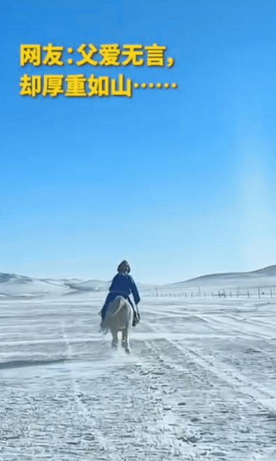 内蒙古,女儿开车出门,突然遇到“白毛风”,能见度不足10米,正在她不知所措时,白雾中出现了一个人影骑着马,原来,父亲担心女儿在“白毛风”中迷路,亲自策马前行,在前方引路护送,女儿非常感动:“爸爸的背影比远方的山还要高!” 12月14日,内蒙古锡林郭勒盟的草原被一场强“白毛风”席卷。狂风裹着暴雪肆虐,能见度不足5米,气温骤降至-25℃,公路早已被厚重的积雪阻断,天地间只剩一片混沌的白。 新手司机高优汗本想周日驾车出门,却被恶劣路况逼得改走陌生的草场小路。这条没走过的路,藏着陷雪、迷路的未知危险,而这份担忧,早已揪紧了父亲的心。 没有过多的叮嘱,父亲牵出家里温顺的骏马,二话不说翻身上马。厚重的蒙古袍裹着他的身躯,却挡不住风雪的侵袭,他攥紧缰绳,策马走在车辆前方,用自己的身影为女儿开辟出一条前行的方向。风雪呼啸着拍打着他的后背,把他的身影衬得有些单薄,可他的步伐却始终坚定。 每走一段路,他总会下意识地回头望一眼,确认女儿的车还跟在身后,确认她没有陷入困境,那一眼里,没有华丽的表达,只有藏不住的牵挂。 最终,在父亲的引路下,女儿的车安全抵达无雪路段,一场风雪中的守护,悄然落幕。车里的高优汗望着父亲被风雪裹住的背影,眼眶泛红,那句“爸爸的背影比远方的山还要高”,道尽了所有感动。 这场草原上的守护,没有惊天动地的壮举,却戳中了无数人的心,核心就藏在“最朴素的守护”与“细节里的牵挂”中。父亲不懂导航,不会开车,面对极端天气,他能拿出的,是草原人最本能、最熟悉的技能——骑马。 这在旁人看来或许是“最笨”的办法,可对父亲而言,却是能给女儿最靠谱守护的唯一选择。他用自己的脊背,把风雪的危险挡在身前,把安全留给身后的女儿,这份粗犷环境里的细腻,更显父爱的柔软。 而最戳老百姓心坎的,恰恰是父亲“不时回头”的动作,以及“用最笨的办法,做最靠谱的事”的反差。我们的生活里,从来都不缺这样的父爱母爱:没有轰轰烈烈的誓言,全是藏在细节里的惦记。就像父亲在能见度不足5米的风雪里,一步步踩出路,还不忘回头确认; 就像小时候下大雨,父母弯腰背我们蹚水,走到半路总会回头看一眼我们是否抓稳;就像我们晚归时,家里永远亮着一盏灯,父母扒着窗户,直到看见我们的身影才安心;就像我们出门前,他们总把保温杯塞进我们包里,反复念叨“记得喝水”,看着我们走远,还会站在门口望很久。 那个“回头”的动作,是父母对孩子最本能的惦记——怕你跟不上、怕你受委屈、怕你遇危险。父亲用骑马引路这个最朴素的方式,把“被人放在心尖上”的踏实感,完完整整地给了女儿。 这份爱,不掺任何杂质,没有任何修饰,却能穿越风雪,直抵人心。因为我们都懂,那份“用自己最熟悉的方式护着你”的坚持,那份“回头确认你安全”的牵挂,就是世间最真挚的爱。