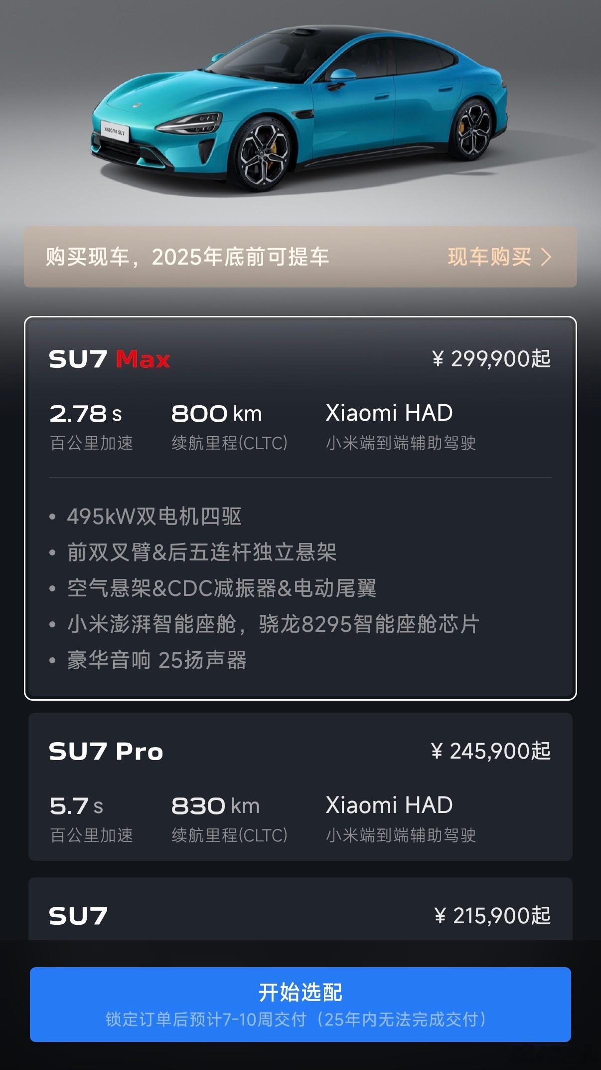 小米新一代SU7明年二季度上市小米SU7换代有消息了!明年二季度上市,有可能会涨价2万元左右小米SU7换代或涨价2万元。涨不涨价的其实都好理解,配置提高了,电池成本更高了,涨点是很合理的。到时候估计又是一车难求的场面,排队等一年说不定都提不到,毕竟第一代SU7就是这样但话又说回来了,着急提车的完全可以选择现款SU7啊,上市两年依然是20万以上的轿车销冠。当你不知道买什么车,就买现在销量最好的车型对不对,怎么都不会出错,还可以减免购置税。现款SU7下定最快7周就能提了,年前开回家舒舒服服两个选择都没错,等新款SU7或者直接早买早享受