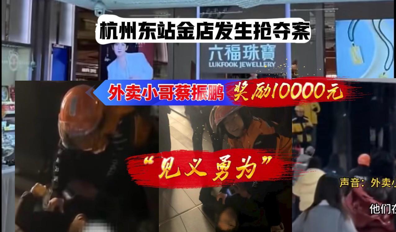 杭州金店发生抢夺案,外卖小哥“见义勇为”获万元奖励 12月15日的杭州东站商场