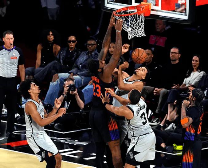 打爆文班的不是唐斯,而是罗宾!罗宾逊今天替补登场只打了18分钟,但是抢下15&篮板,其中10个进攻篮板,是NBA杯决赛最多的。也是本赛季前场板最多的之一(本赛季伊夫-米西、多诺万-克林根俩也抢下10个前场篮板)。 其中第四节马刺全队只抢到6个篮板,而米罗一人抢到8个篮板球,一人超一队!米罗全场交出6投2中贡献4分15篮板2助攻1抢断2封盖的全面数据!