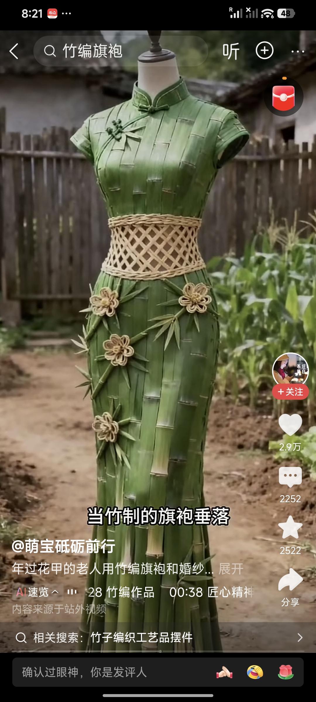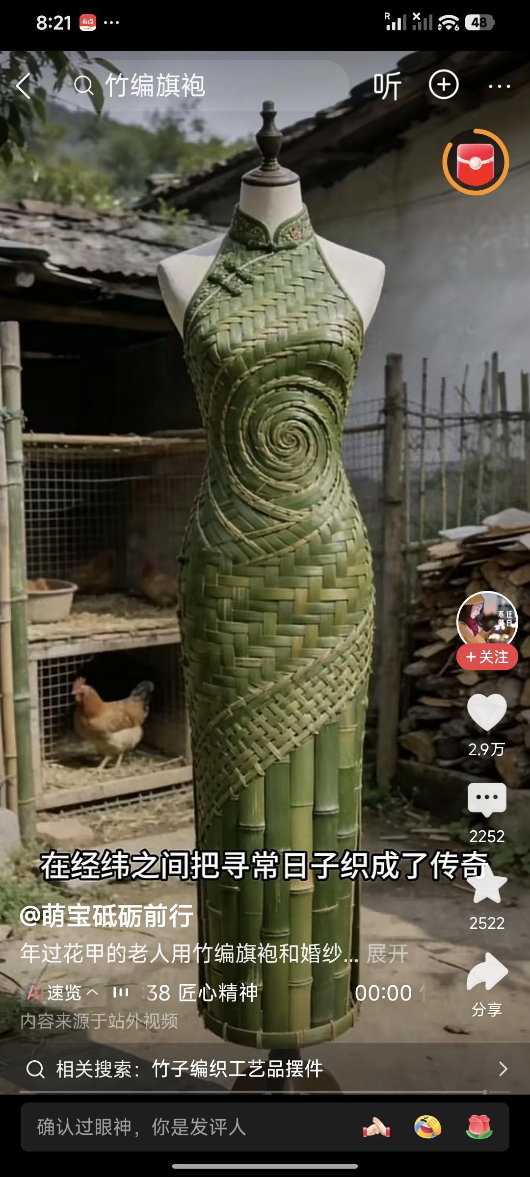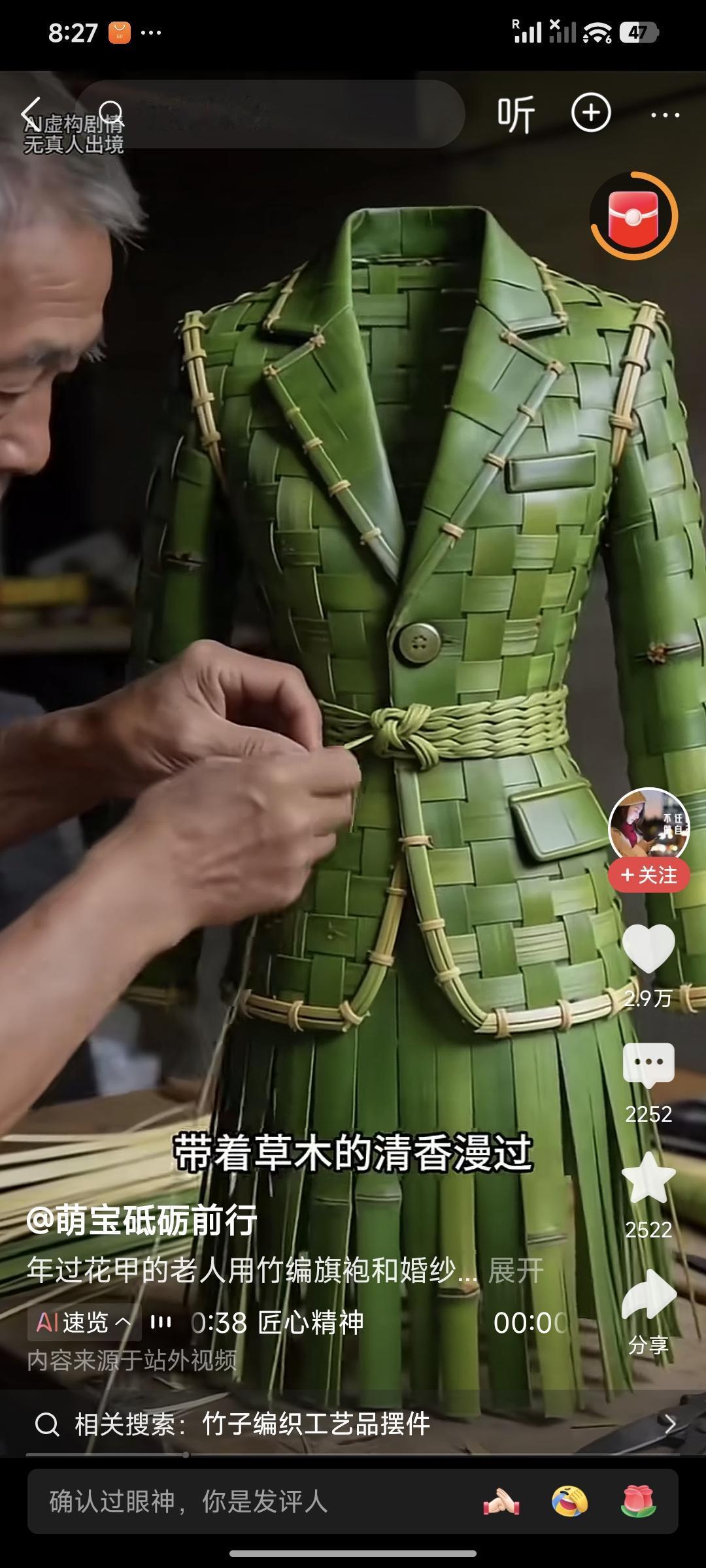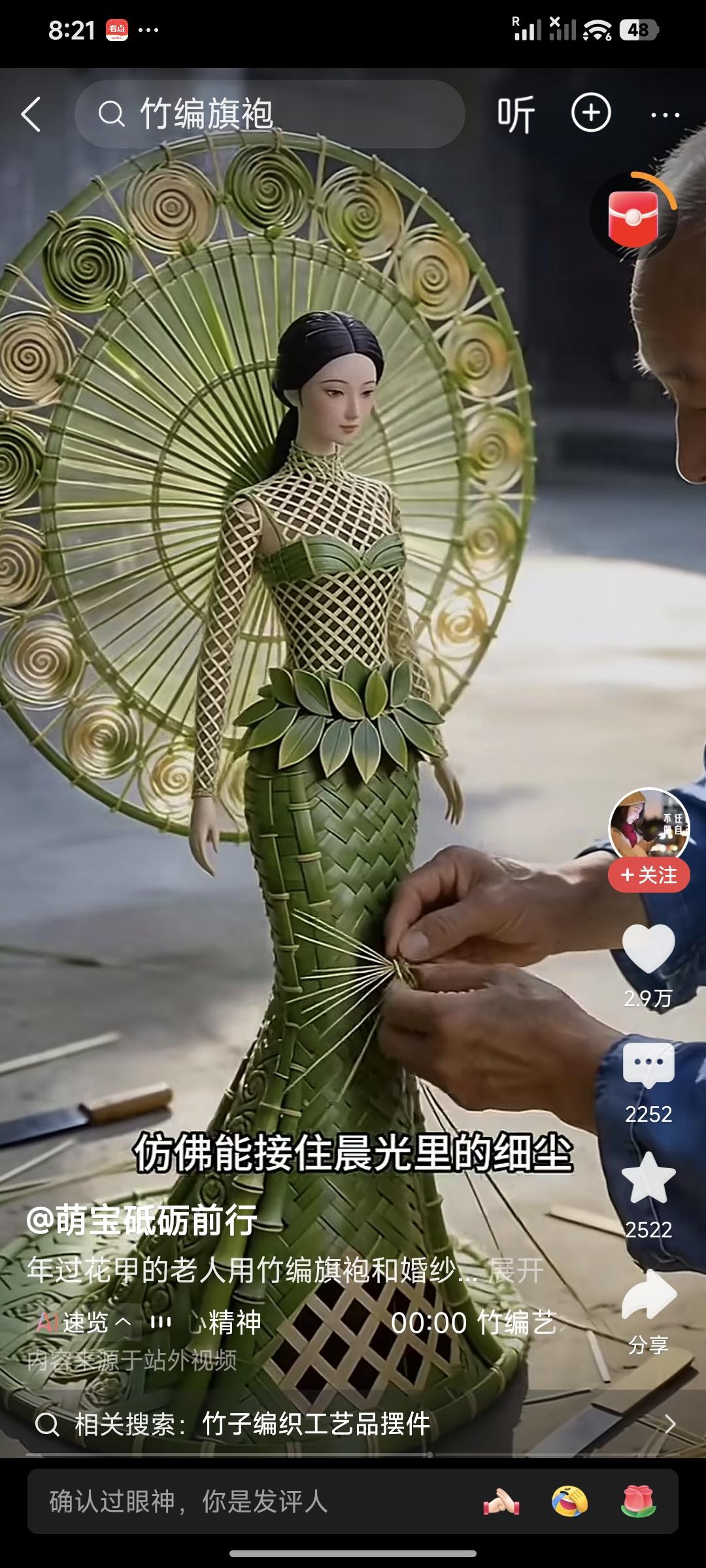 这样的人算不算艺术大师? 刚刚看到一个视频,介绍的是一位年过六旬的民间艺人,用竹子编出来了各种竹子美女,令人大开眼界…… 竹子,在一般人的眼里,就是一根根绿色的植物,除了是熊猫的食材外,也就是个建筑材料和各种竹艺原料,可在这位民间艺人的手里,它居然变成了一个个漂亮的窈窕淑女…… 看完视频,令我惊愕,他不光是竹艺精湛这么简单,他的美女服装设计应该超过了某些服装设计师…… 我就想问,这样的人是不是艺术大师?
