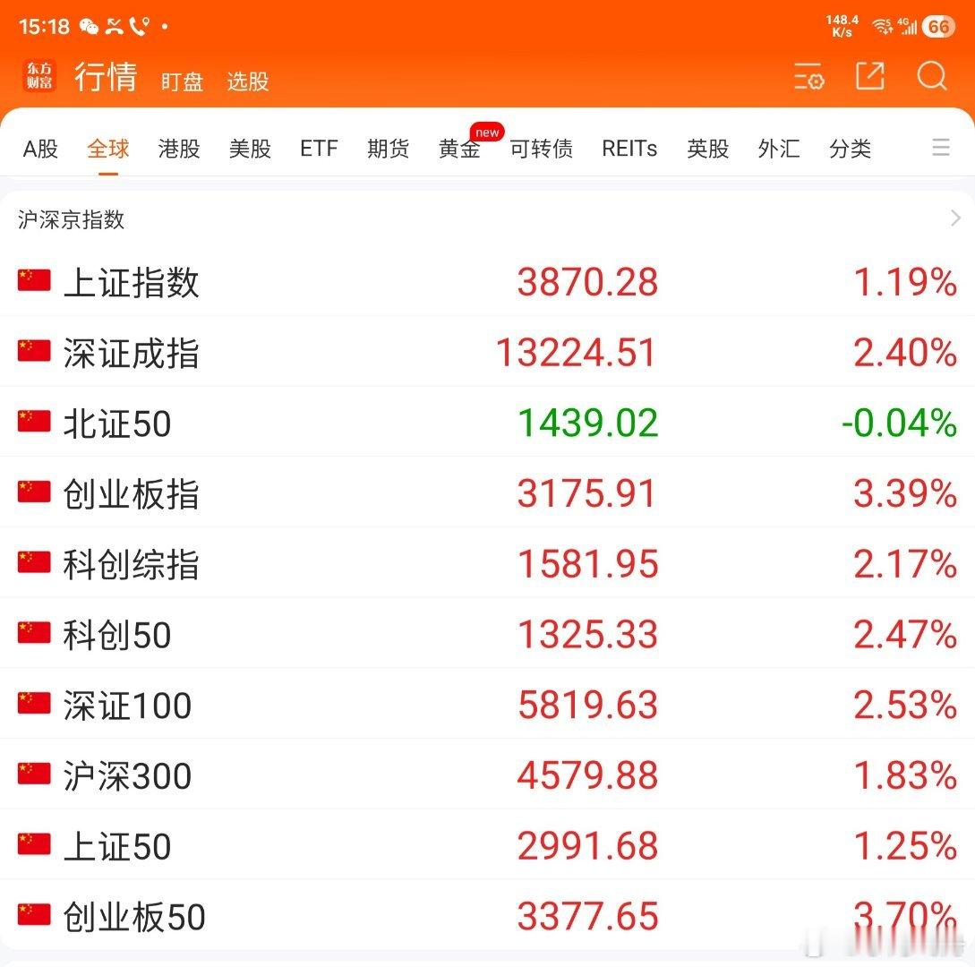 今天A股大盘强力反弹,走势不错:东方财富App显示的10项指数除北证50稍跌收绿以外,其中有3项指数大涨1.19%一1.83%,有6项指数暴涨2.17%一3.70%。个股走势亦不错: 沪深京三交易所中,上涨的股票有3623支,比昨天多2557支,其中涨幅在7%以上的有125支,比昨天多52支; 持平的股票有75支, 比昨天多27支; 下跌的股票有1571支,比昨天少2584支,其中跌幅在7%以上的有64支,比昨天少39支。三个市场全天的成交量为18344亿元,比昨天增861亿元。今天A股大盘和个股持续双双走出了反弹收复行情,多空搏弈,多头占优,从整体来看,下行风险减少,后市若有增量资金入市,上扬可期