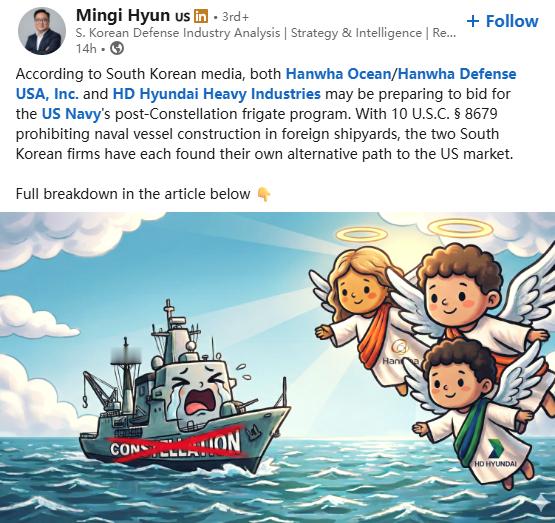 据韩国媒体报道,韩国韩华海洋/韩华防务美国公司和现代重工可能正在准备竞标MD一等人新的“星座”级护卫舰项目。由于美国法典第10篇第8679条禁止在外国船厂建造海军舰艇,这两家韩国公司各自找到了进入美国市场的替代途径。每天认识一件兵器烽火问鼎计划 【现代重工与 HII 的合作】2025年10月26日,HD 现代与亨廷顿·英格尔斯工业公司HII)签署了一份战略性谅解备忘录(MOA),旨在结合 HII 既有的美国本土制造体系与 HD 现代的技术专长。HII 建造了全部 10 艘“传奇”级国家安全巡逻舰(NSC)。据称,美国海军部长 约翰·费兰倾向于将该设计作为“星座”级的替代方案。HD 现代在这一合作中,可能将作为能力倍增器,为 HII 的船厂运营提供先进工程能力、供应链优化以及模块化建造技术。优点:生产准备度高:HII 拥有 NSC 的工具设备、模具以及生产工程数据。尽管在 2025 年 6 月第 11 艘 NSC 被取消后生产线暂停,但相关的组织经验和技术积累很可能仍然完整保留。HD 现代具备世界一流的造船效率和先进建造技术,有望加快建造进度并降低成本。缺点:整合挑战:在缺乏正式合资公司或股权关系的情况下,HD 现代本质上更像是一家高端顾问。将韩国的生产方式融入一个成熟的美国船厂文化中,可能面临显著的协调难题。产能冲突:HII 当前已承担多项高优先级项目,如美国海军驱逐舰和两栖舰艇计划。在同一生产体系内大规模增加护卫舰建造,可能对其他关键项目造成进度风险。【韩华的“混合式”布局】相比之下,韩华采取了一种更加激进的双轨策略:合作路径:利用其在 Austal 的股份,与其建立生产合作关系。Austal USA 位于阿拉巴马州莫比尔的现代化船厂,具备建造类似排水量舰艇的能力。所有权路径:利用其全资拥有的费城船厂生产舰体模块,实施分布式建造模式,从而建立一个由韩华直接掌控的建造体系。优点:产业所有权优势:韩华是真正的“利益攸关方”。作为费城船厂的所有者以及 Austal 的最大股东,韩华能够比现代重工–HII 模式更直接地推动效率改革和技术转移。专注度更高:与 HII 相比,Austal USA 受到的传统一级主力项目约束较少,护卫舰项目很可能成为其核心工作重点。缺点:设计转化风险:Austal USA 并不具备 HII 在 NSC 项目上的生产工程经验。将 HII 的建造策略移植到 Austal 的生产线上,可能需要显著调整,从而引入技术风险。复杂性加深:这些安排虽然使韩华更深度融入美国国防工业体系,但也可能带来成比例增加的监管、安全和文化层面的挑战。