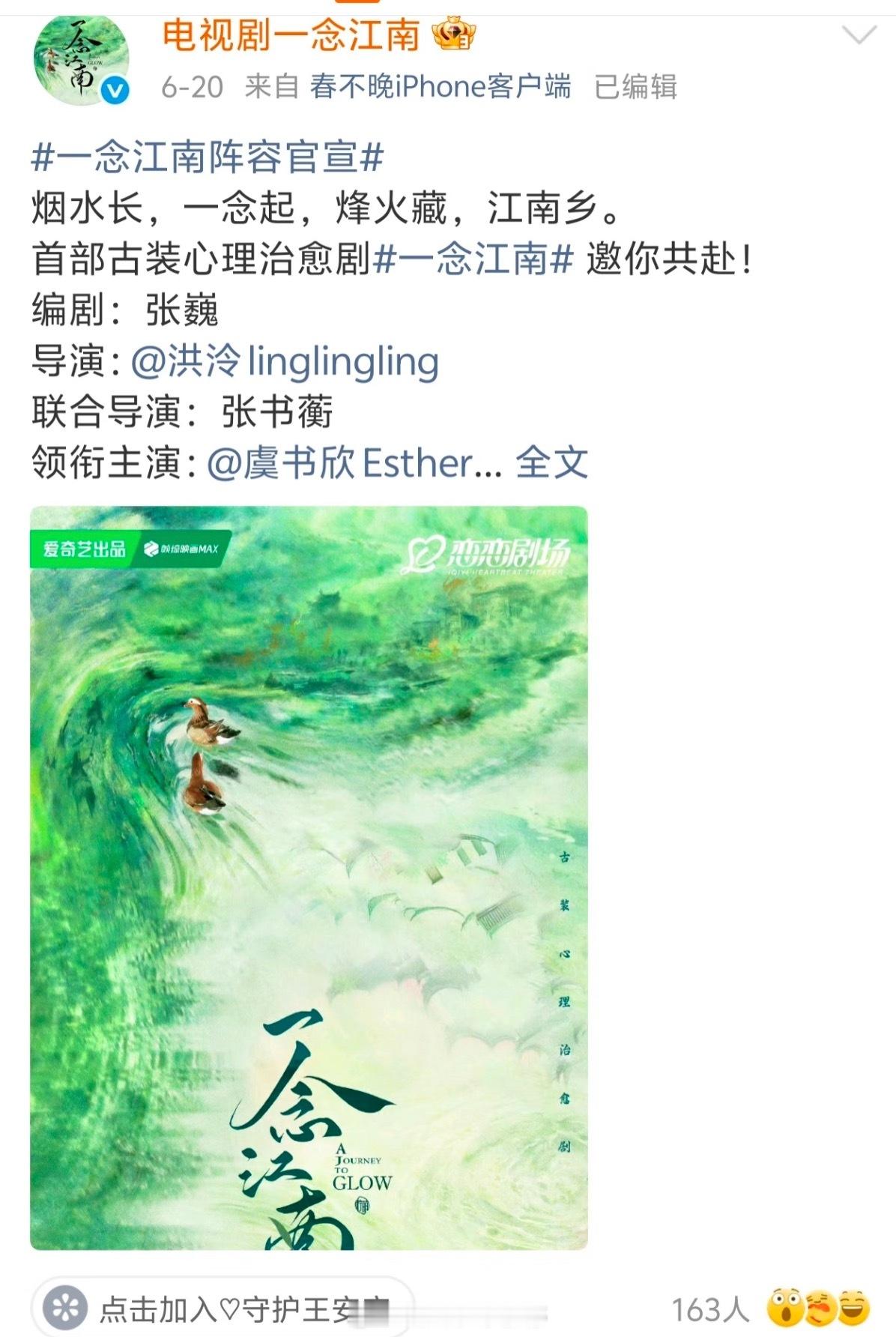 《一念江南》给赵露思也递过剧本,这剧官宣的是虞书欣主演