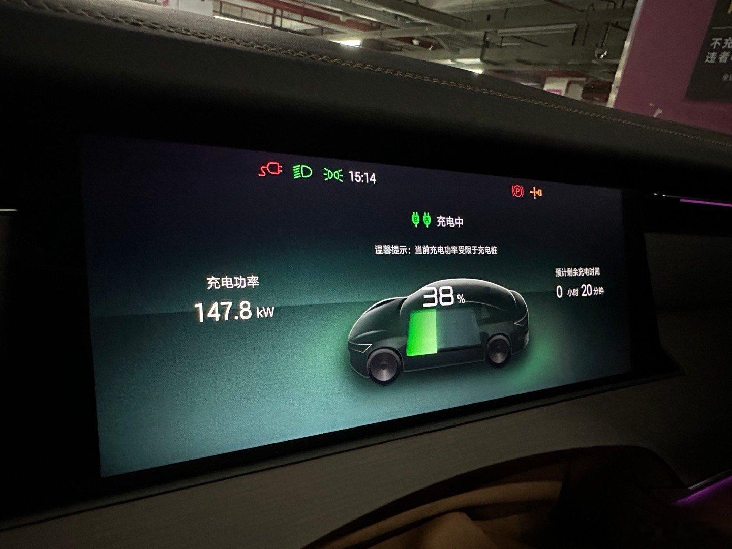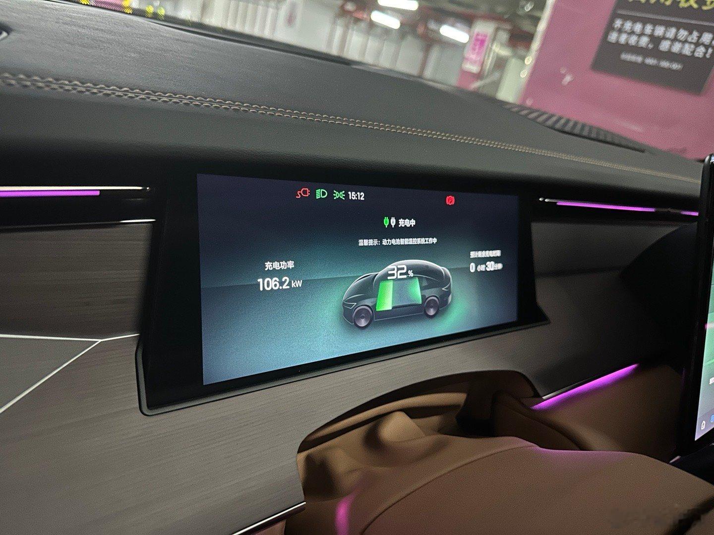 离开上海前再给汉L充一次电,在地下停车场刚好看到有120kw的桩,那就试试用这种最常见的“慢桩”吧。明显站场功率不够,刚开始一支枪都跑不满120kw,但双枪还是硬生生多榨出40kw,最后是用24分钟充到98%。这次真的体验双枪充电最实用的场景,完全不挑桩,充电不纠结同时在上海的另一边,志豪的理想i8也因为站场功率不够,5C专用枪也花了19分钟才充满,没比我快多少嘛智能车研究所比亚迪汉l