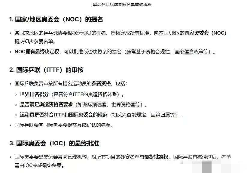 小编真的是瞎编。国乒的名单是通过乒协的选拔规则获得的,既然是乒协上报中国奥委会,并由其提名,如果不符合国际乒联的规定,责任由乒协承担。贴图中并没有说国际乒联要审核积分够不够,没有世界排名及积分,只要是通过正式选拔赛获得的参赛资格则符合要求。问题是国乒的参赛资格是通过乒协自己的选拔规则获得的,参照乒协巴奥选拔规则,不代表国乒参加比赛能获得单打奥运参赛资格?