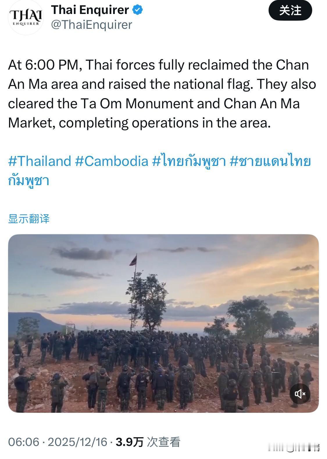 12月16日下午6点,泰军完全收复了占安玛地区,并升起了国旗。他们还清剿了塔翁纪念碑和占安玛市场,结束了该地区的军事行动。