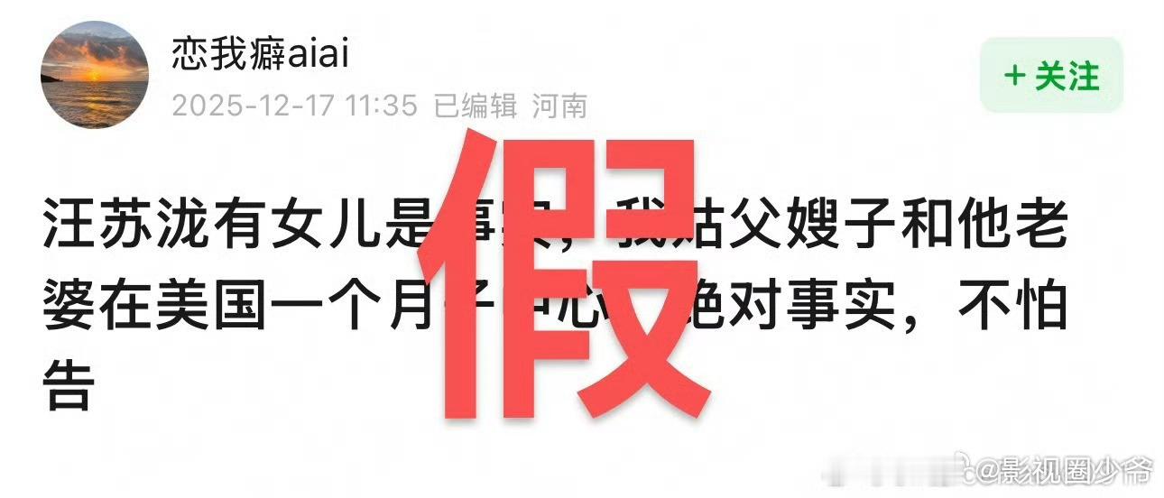 汪苏泷孩子汪苏泷方已辟谣了喔!