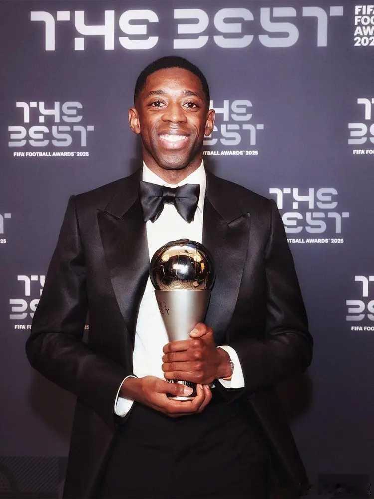 12月17日2025年国际足联年度颁奖典礼,在卡塔尔多哈的费尔蒙卡塔拉酒店举行。最终,28岁的巴黎圣日耳曼前锋奥斯曼-登贝莱,成功当选2025年度最佳男足球员(世界足球先生)。