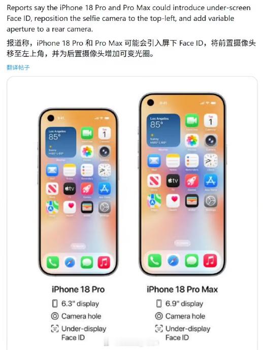 iPhone18Pro或摒弃药丸状挖孔 哦?iPhone18Pro要大变样了?直接变成跟国内厂商一样的挖孔屏样式?我的天,emmm果味直接减少一大半,安卓味越来越浓啦