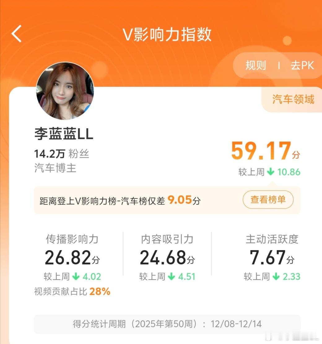 上周都没发微博,现在金V也掉了。V指数也59分了。你们说该怎么办吧?