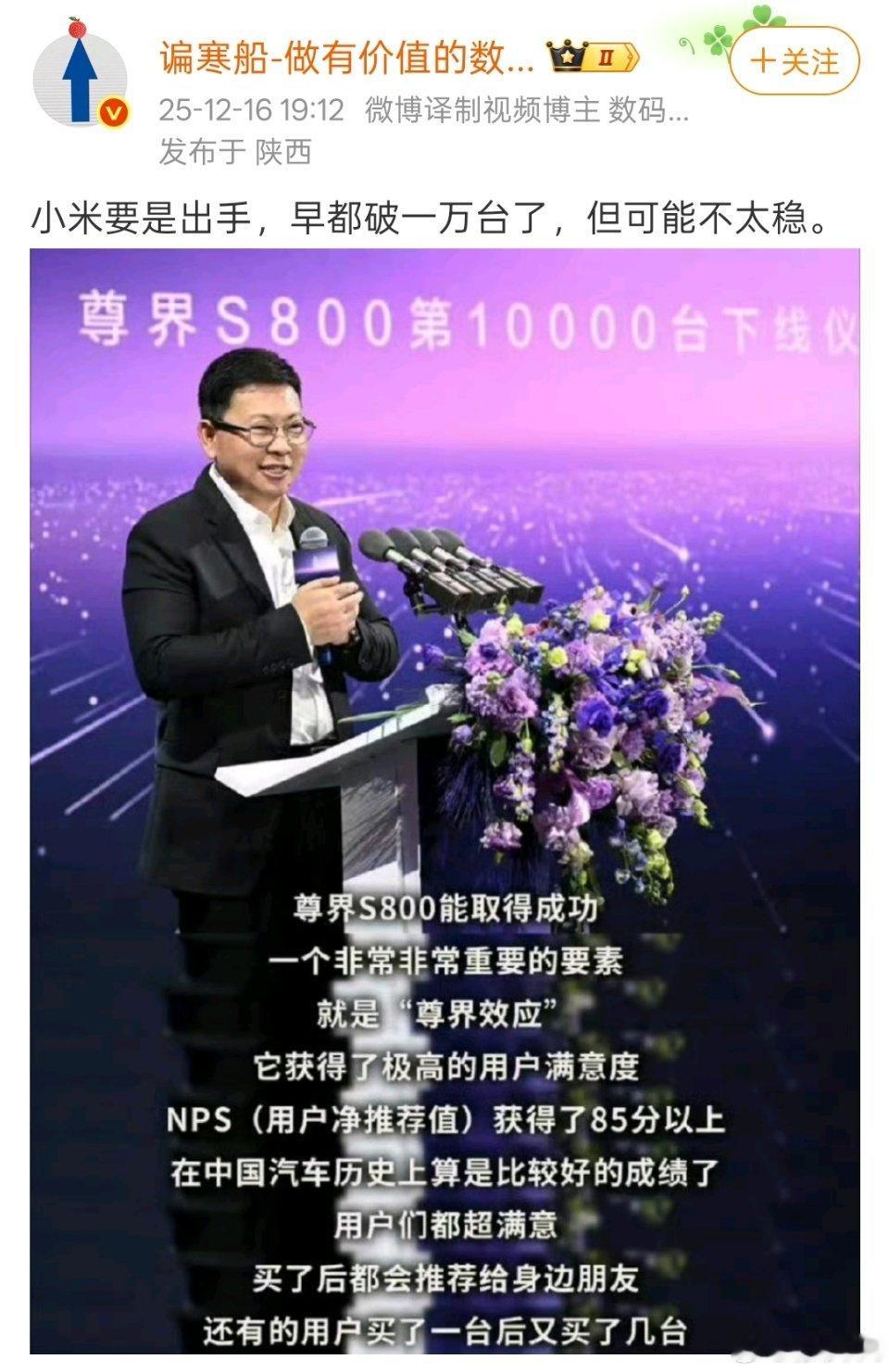 国产超豪华汽车新的里程碑——尊界S800下线第1万辆车。华为的技术和品牌力确实强