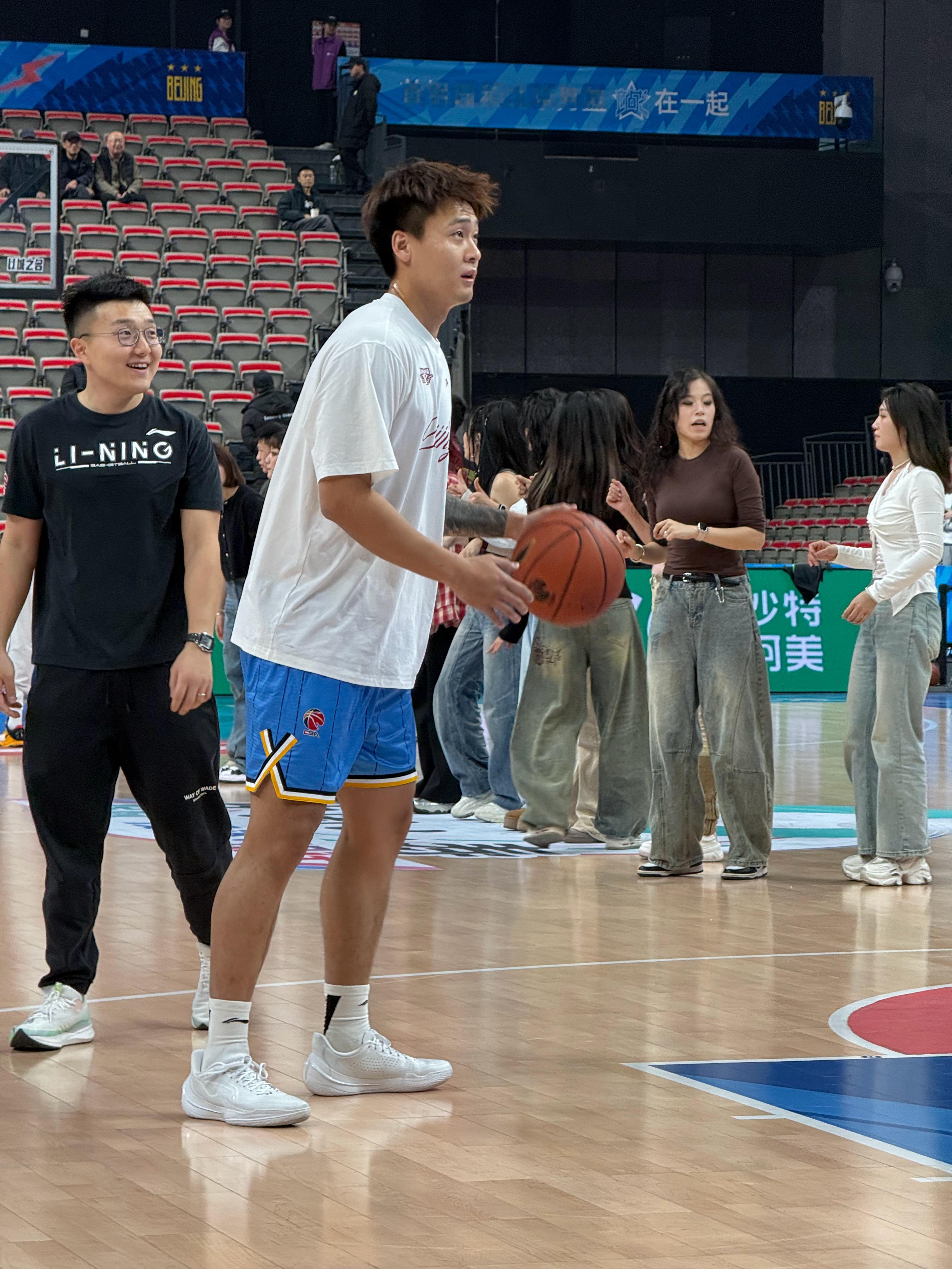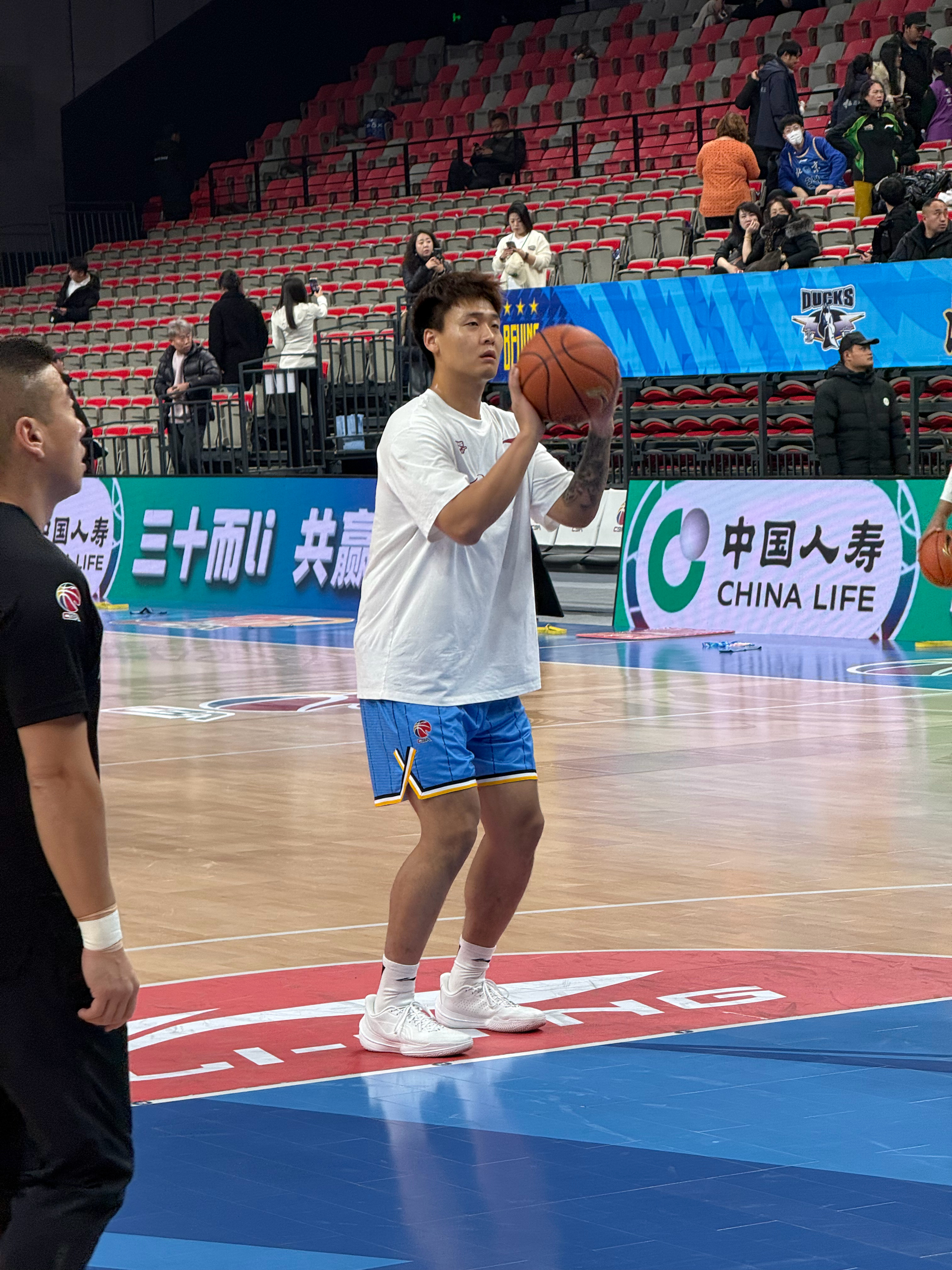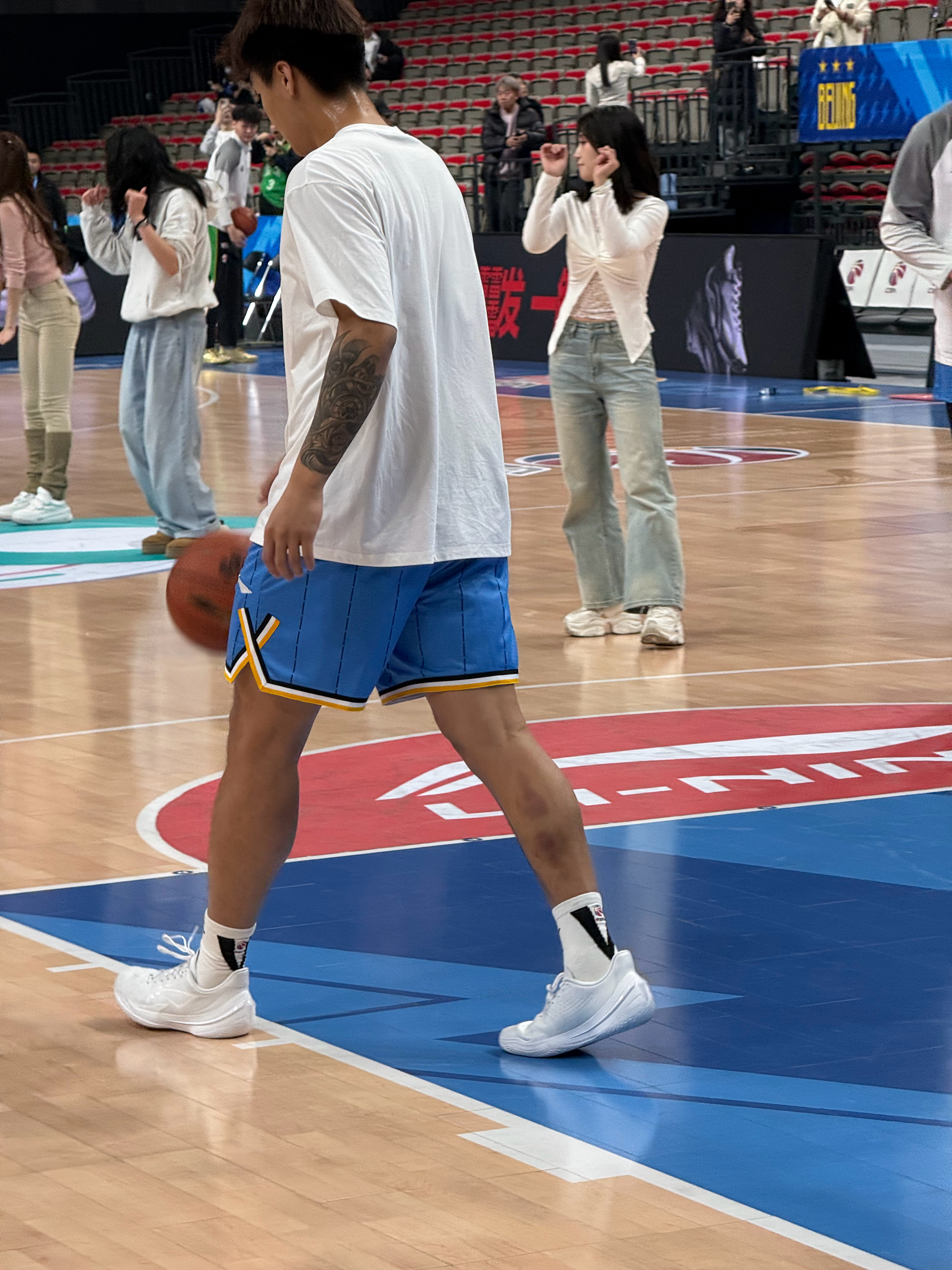 到场地了,发现赵睿这会儿还没绑小腿,上一个国家队窗口期集训拉伤的地方,还能看到有淤血在。北京男篮vs辽宁男篮 北京·首钢冰球馆