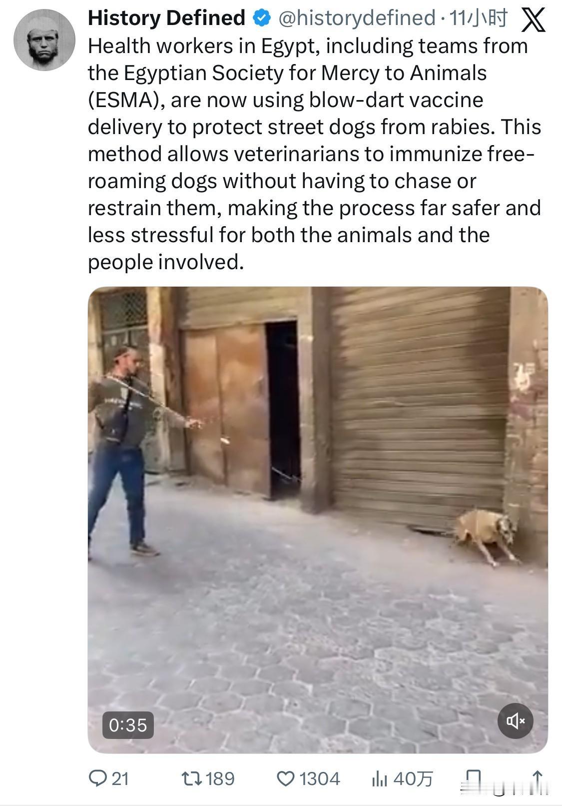 埃及的卫生工作者,包括埃及动物仁慈协会(ESMA)的团队,目前正在使用吹箭式疫苗注射法为流浪狗接种狂犬病疫苗。这种方法使兽医无需追赶或控制流浪狗即可为其接种疫苗,从而大大减轻了动物和相关人员的压力,也使整个过程更加安全。