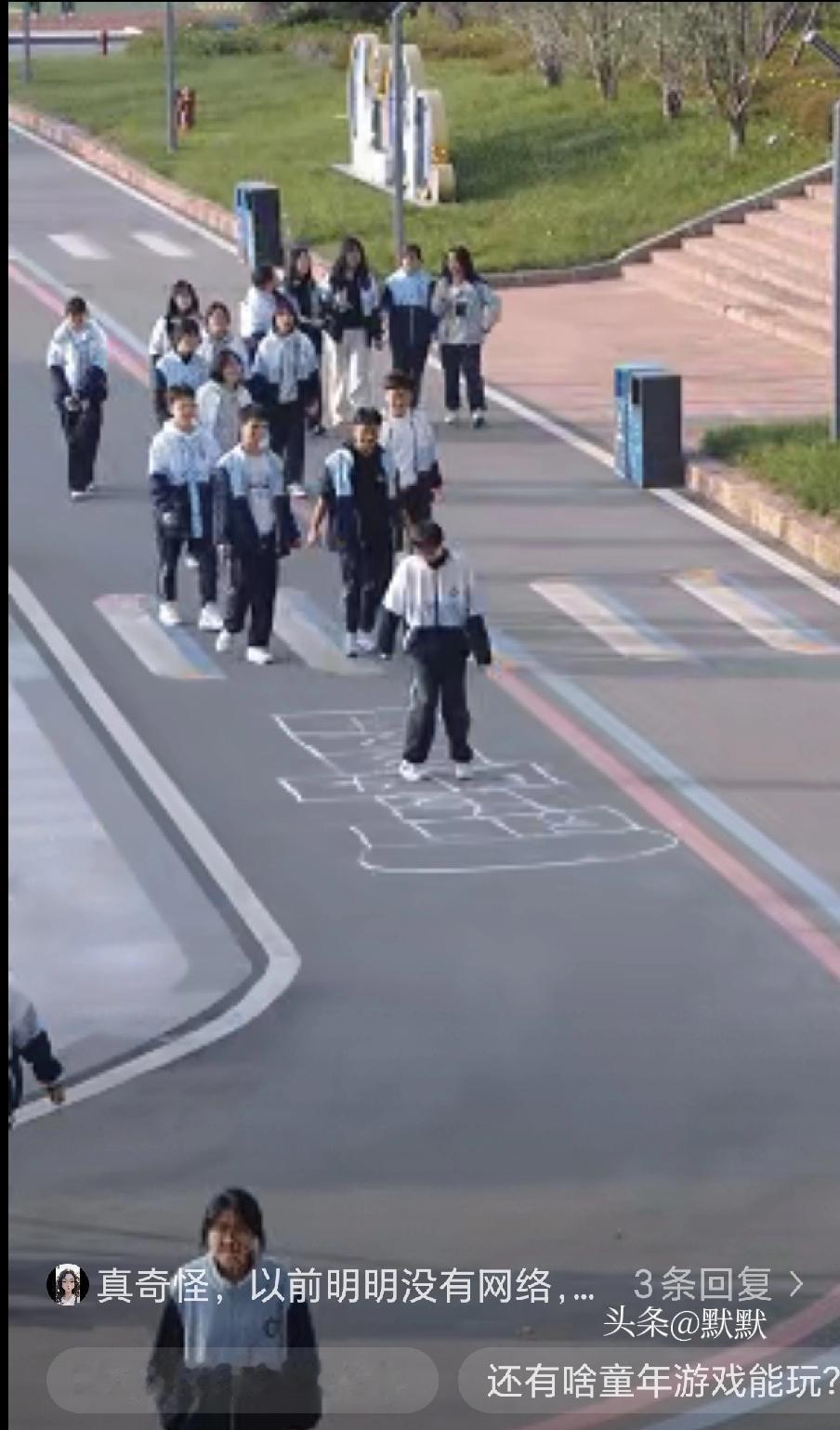 “解释不清了!”四川德阳,两个高中女生趁着课间,在上课的必经路上,用粉笔画了个"跳房子"的游戏,没想到,接下来发生的一幕幕,让人既想笑,又想哭……网友:他们好像跳错了,因为没有跳回去;他们好像又没跳错,因为好像回不去了。 这哪是简单的粉笔格子,分明是戳中几代人的时光开关,把藏在记忆里的童年瞬间拽到了眼前。学生跳得行云流水,是青春正好的鲜活;保安偷偷跳得僵硬却认真,是成年人藏起的天真;老师跳得缓慢又失神,是对逝去岁月的温柔回望。 现在的孩子捧着电子屏幕,哪懂一块石子、几根粉笔就能撑起的快乐?那些不用氪金、不用联网的集体游戏,藏着最纯粹的社交和最简单的满足,可偏偏被时代的洪流冲得越来越远。 其实我们怀念的从来不是跳房子本身,而是那个没有KPI、没有焦虑,只敢肆意撒欢的自己。那些格子里装的,是回不去的时光,更是我们对抗生活疲惫的精神底气。你小时候最痴迷的童年游戏是什么?评论区聊聊那些让你难忘的快乐瞬间~