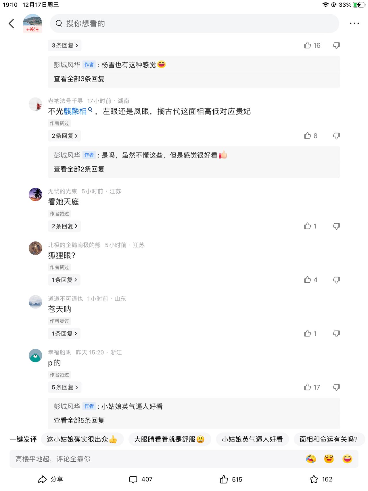 最近这小姑娘火了!长发尾,麒麟相。听说搁古代,怎么也是个世家千金。 有大神给分析一下,真的是这样吗? 有几个疑问,我家孩子,狐狸眼,眼尾向上,尤其是照相的时候,看着很严重。就那么看,还好。额头五指宽,还算聪明。985在读。鼻翼塌,小鼻子。 嘴巴微微有点大,爱抠嘴唇,色彩淡,抠嘴皮,戒不掉坏毛病。下颌有棱角,知道董宇辉那个棱角吧!没那么严重,但很明显。 我不想晒她照片,她不让。我只希望她比我好就行。最近天冷,寒冷,心也冷,钱太难找了。有懂的说说呗!谢谢哈。