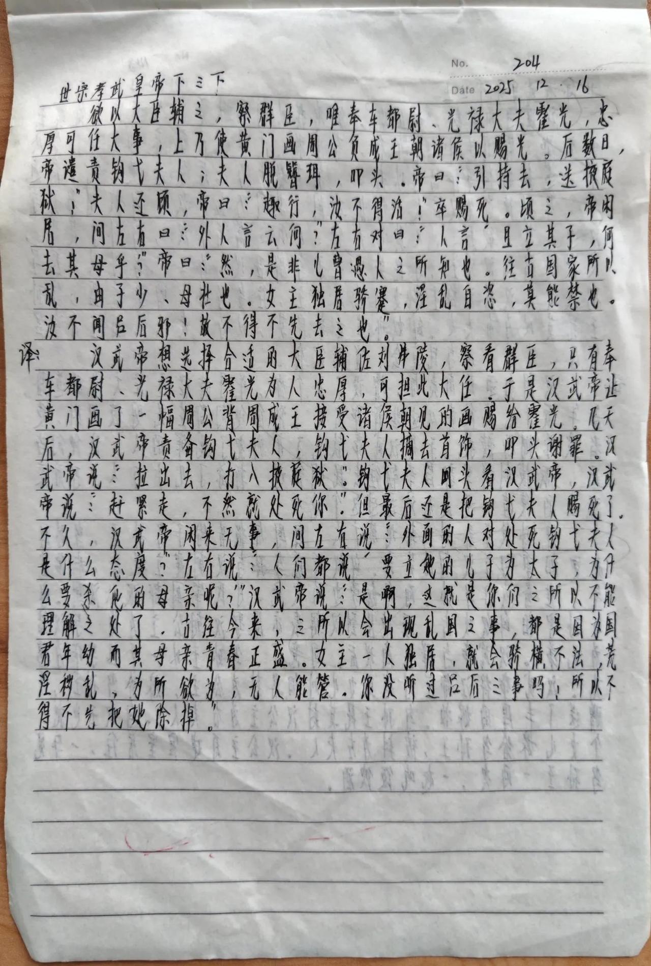 看帝王权谋,抄《资治通鉴》第204天。 汉武帝想物色大臣辅佐刘弗陵,发现只有霍光符合。 由于母壮子幼,汉武帝找了个理由把刘弗陵的母亲钩弋夫人杀了,以免她将来干政。