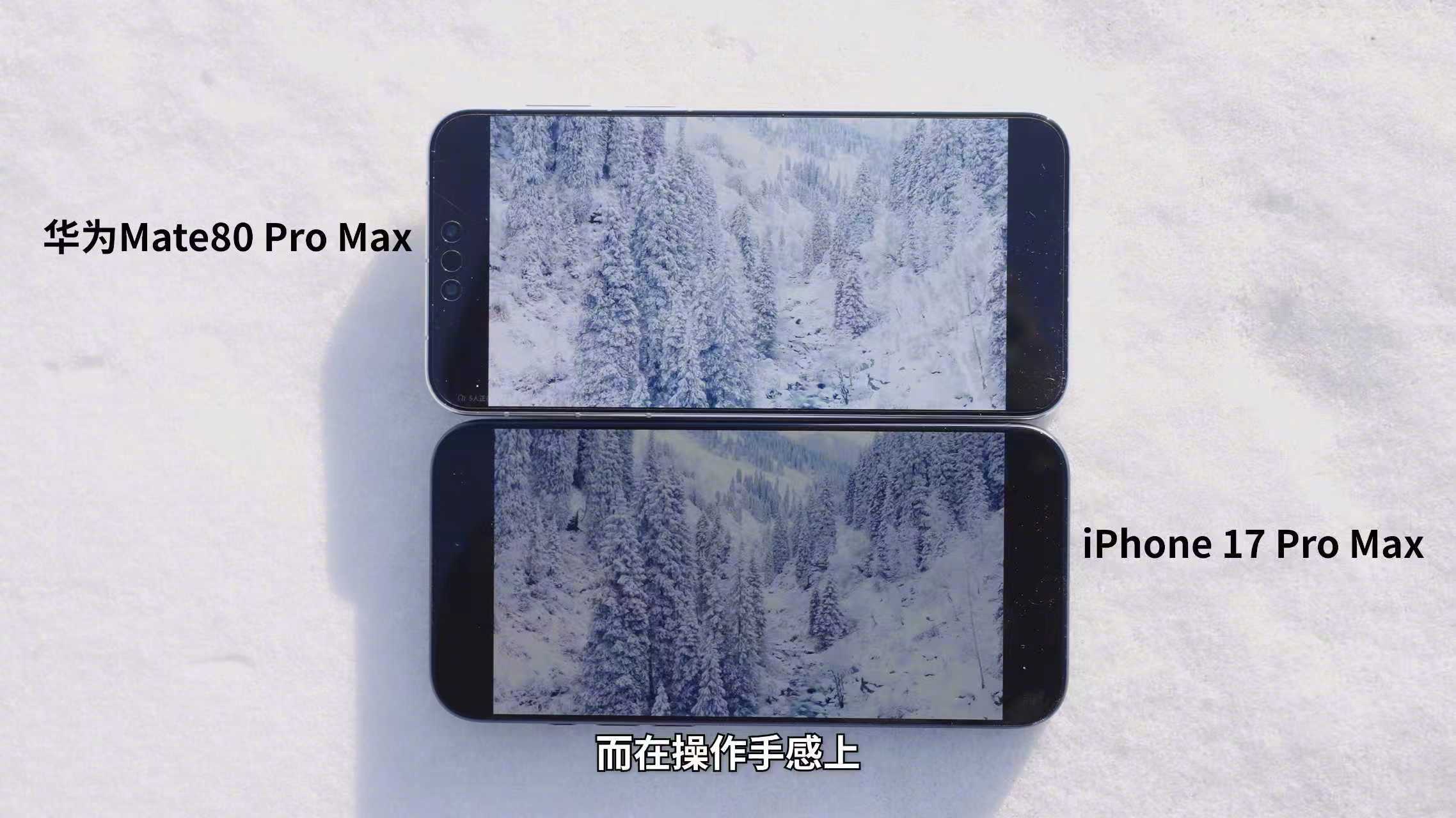 华为Mate80可靠性冬测挑战最近把华为Mate 80 Pro Max带去了一趟东北,顺便也在零下结冻的冰面上里做了个三项实测。本来只是想试试看这台手机在极寒下的稳定性,没想到它的表现真的挺让我意外的。第一是散热。直接把 Mate 80 Pro Max 和 iPhone 17 Pro Max 一起放进雪地录视频,在镜头上都堆上雪,10 分钟之后,Mate 80 Pro Max那边的冰几乎没化,iPhone这边明显化了不少,散热能力明显华为Mate 80 Pro Max更好。第二是屏幕。下雪天的户外反光强度其实很高,一般手机的亮度在这种环境下会明显不够用,要用手遮挡一下才能看清屏幕内容,但Mate 80 Pro Max那块超透亮灵珑屏亮度足够高,显示依然很清晰。最后是耐磨测试,直接把手机从冰面上丢出去,华为Mate 80 Pro Max机身毫发无损。全金属玄武架构 + 第二代昆仑玻璃这块,确实抗造。iPhone的铝合金机身一会就出现了不少坑坑洼洼。论散热、屏幕亮度和耐造,还得是华为Mate 80 Pro Max。