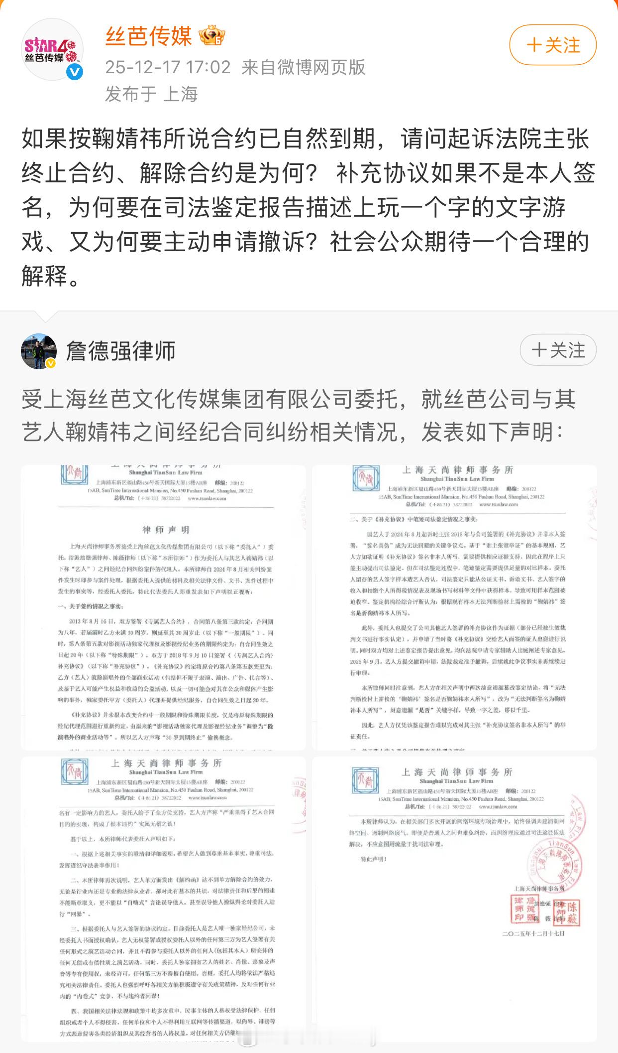 丝芭再发律师声明 两边都硬刚到底了 鞠婧祎丝芭 硬刚