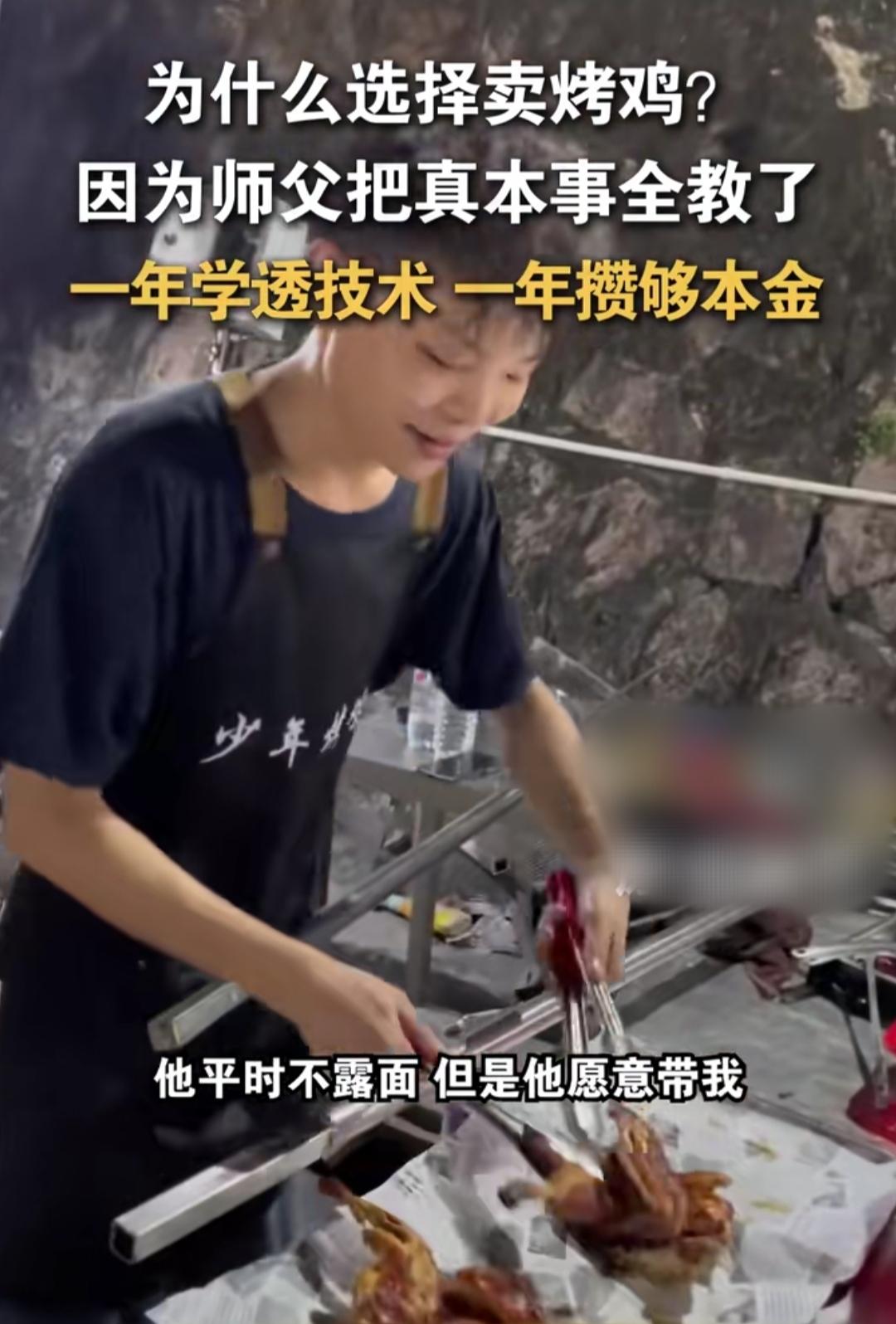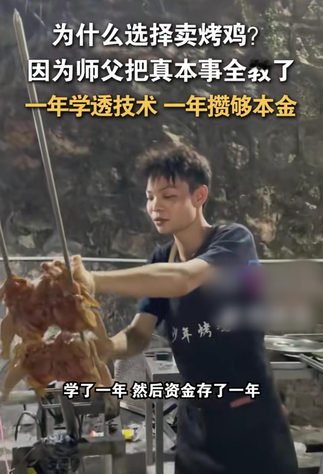 深圳这位少年小陈的烤鸡摊彻底火了!真没想到他那不怎么露面的潮汕师父,竟把烤鸡的真本事全教给了他。而小陈也没辜负这份心意,花一年学透技术,又攒了一年本金,硬是把小烤鸡摊做成了人气摊位。 镜头里的小陈熟练翻动着烤鸡,手法利落得不像新手。他说师父平时低调不露面,却愿意毫无保留地带他入行,这份知遇之恩让他格外珍惜。从学徒到独当一面的摊主,小陈用两年时间,把师父教的手艺变成了自己的底气。 这世上从没有凭空的成功,有人愿意倾囊相授是幸运,而懂得抓住机会、踏实努力才是根本。小陈的故事告诉我们,只要肯拼肯学,小摊位也能闯出大天地。你身边有没有这样靠手艺和努力出圈的普通人?