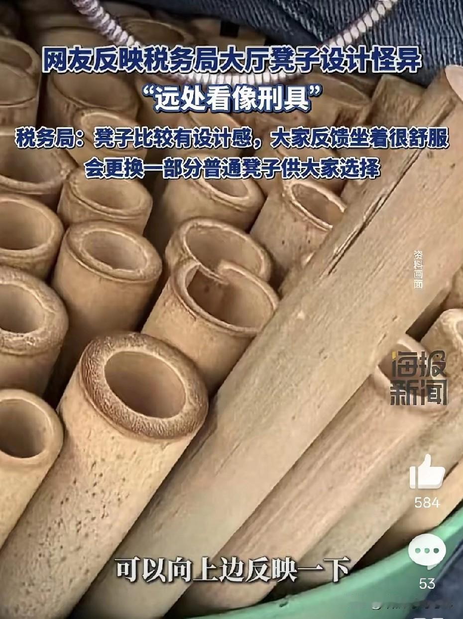 今天被一张“审讯风”凳子刷屏:无靠背、无扶手、无数竹竿插在一个桶中。当地税务工作人员称:“凳子比较有设计感,大家坐着很舒服,会更换一部分普通凳子供大家选择。网友辣评:“这不是办税,是办我。” 我顺手翻了翻史料,发现“冷板凳”古已有之,旧时衙门放把硬木椅,越坐越冷,暗示“老实交代”。如今21世纪,却把历史糟粕当工业美学,把权力暗示写进设计图:让你抬头仰望柜台、缩肩降低气场。 公共服务的第一属性是“公共”,不是“不舒服”。真正该摆在大厅的,是高度可调的软椅、是无障碍扶手、是叫号屏上滚动的“请坐”二字,而不是让百姓反思“我错在哪”的疑惑现场。 缴税本身就容易让人焦虑,座椅还摆成审讯室架势,岂不是给大众添堵?我前阵子去办业务也踩过同样的坑,造型炫酷却坐如针毡。行话来说,这叫人体工学叠加环境心理。公共大厅的布置得把“人”放C位,兼顾好用、好看、好情绪。 税局肯火速发声值得点赞,但更要反思服务是否真正人性化?别让形式大于内容。其他部门也该引以为戒,让人舒心的环境才是好服务的第一步。 ——🌱—— 今天你想坐这把椅子吗? 评论区说说:你遇到过最离谱的公共服务设计是什么? [图源网络]