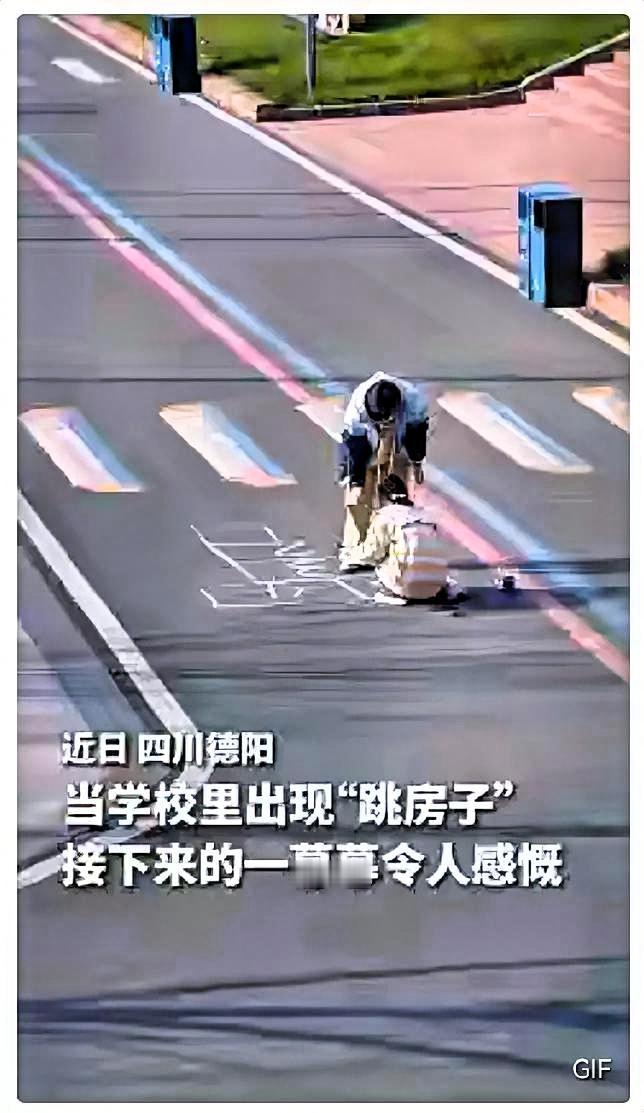 解释不清了! 四川德阳,两个高中女生趁着课间,在上课的必经路上,用粉笔画了个"跳房子"的游戏。 没想到,接下来发生的一幕幕,让人既想笑,又想哭…… 先是一个路过的割草工人,看了看后犹豫了一下,还是选择跨过去了。 紧接着,随着一声下课铃响,成群结队走出教室的学生们,看到后,怎么可能不跳呢? 于是几个女生开始“咯吱咯吱”地跳起来了,随后更多的学生加入其中。 连保安大叔和路过的老师也禁不住笑着加入其中。大家跳什么呢? 不就是快乐童年时的跳房子吗? 只不过现在都是高了档次,都是“跳槽”! 网友们在评论里都是这样说的:“这些人跳的是游戏,跳的是童年,可惜这些都是回不去了!” 可怜我们的孩子,现在都不玩这个游戏了。因为他们的童年里,只有手机、游戏机、iPad……! 德阳两女生课间画跳房子,师生保安争相加入。粉笔格子装着童年,也打破身份隔阂。老游戏的快乐简单纯粹,远比电子屏更有温度。 时间真是可怕的东西,它像流水一样,匆匆地从我们眼前流过,却留下了一大堆我们看不到的东西。 大家都学会了往前走,却忘了如何回头;大家都明白了舍不得,却不知道如何留住!不如让我们一起“跳”起来吧! 你上学时最疯玩的课间游戏是什么?有没有和同学抢地盘玩的搞笑经历?评论区分享下吧~