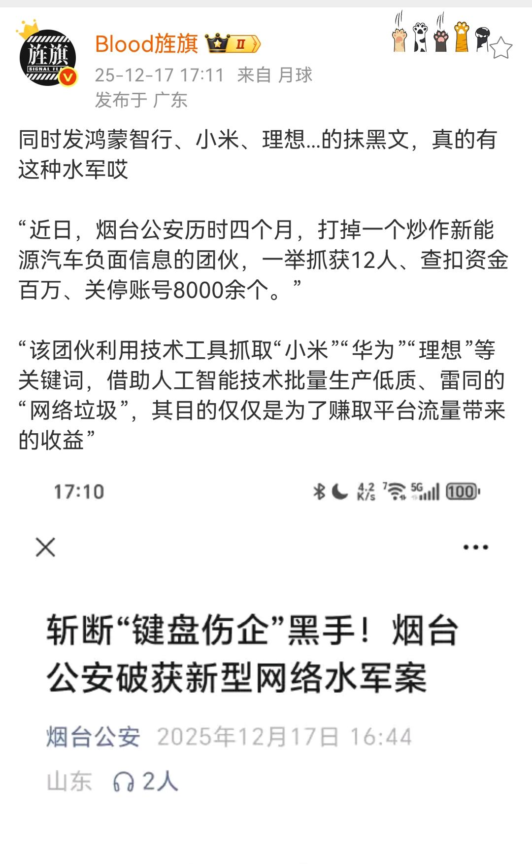 艹老师:一个恶意炒作新能源汽车负面信息的团伙,目的仅仅是为了赚取平台流量带来的收益! 这个团伙太抽象了,通过控制8000多个账号来批量抓取网络上比较知名的新能源汽车品牌的负面消息,然后再使用这些抓取来的负面消息,制作相关的内容,在相关平台发布,这样就能得到相关平台的收益了。 这群人的目的还真的是相当的简单,就是通过播放量获得相关平台的报酬。各位是怎么看的?欢迎评论区留言。