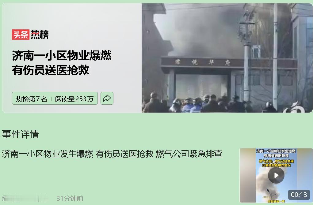 物业办公室炸了?这也太魔幻了!平时催费查安全最勤快的地方,自己先着了火,这不是打脸是什么?济南今年真是“火”了,供暖管道炸、居民楼炸,现在连物业办都炸了。这一连串的,真是意外吗?我看不像,这分明是侥幸心理的连环爆雷! 咱们掰开看。前几个月天桥区那起液化气爆燃,人没了,伤了好几个。官方通报写着呢:阀门没关,报警器没插电!还有长清区,老师傅通燃气,就因窗户没开够,一点火就炸了。三十多年的老师傅都栽在这上头!这些事原因出奇一致:不是设备坏了,就是人疏忽了,再不就是管理睁只眼闭只眼。 痛心啊!每次出事,“正在调查”就来了。可光上半年全国就180多起燃气事故,这数字不烫手吗?别总等出事了才搞“大排查”,这跟家里着火才买灭火器有啥区别?根子上的问题是:安全投入是不是总想省钱?老旧管道换不换?报警器装不装?安全意识到底进没进脑子?那些血淋淋的教训,难道还不够吗? 说点我们能做的。回家先看看你家燃气胶管,老化了赶紧换!报警器一定插上电,别让它当摆设!用气时窗户打开,通风比省那点电费重要一万倍。闻到异味,先关阀、开窗,别碰任何开关!物业办都能出事,咱自己家、楼下餐馆,更得留个心眼。 说到底,我烦透了那种“没出事就没事”的心态。安全不是成本,是底线!不能总在悲剧后“加强管理”,风头过了又一切照旧。这次物业办爆燃,简直是个黑色笑话——最该安全的地方,自己先破了防。 这记耳光,该打醒谁?我们不要事后的“狠活”,只要事前的踏实。毕竟,谁也不想成为下一个新闻里的主角。济南一小区物业爆燃 有伤员送医抢救