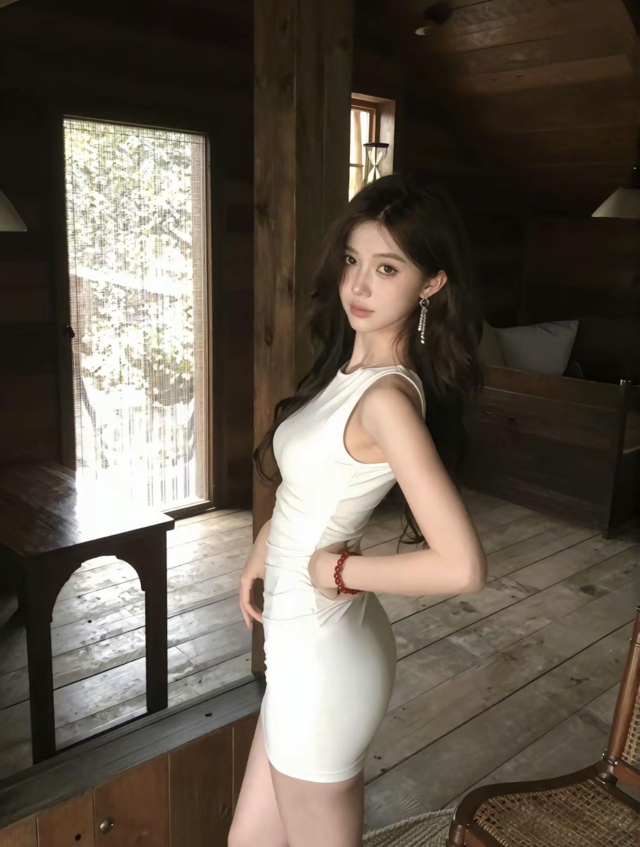 木质空间里的光与影,揉碎了夏日的慵懒,白裙与原木色撞出的温柔,是独属于此刻的松弛与浪漫