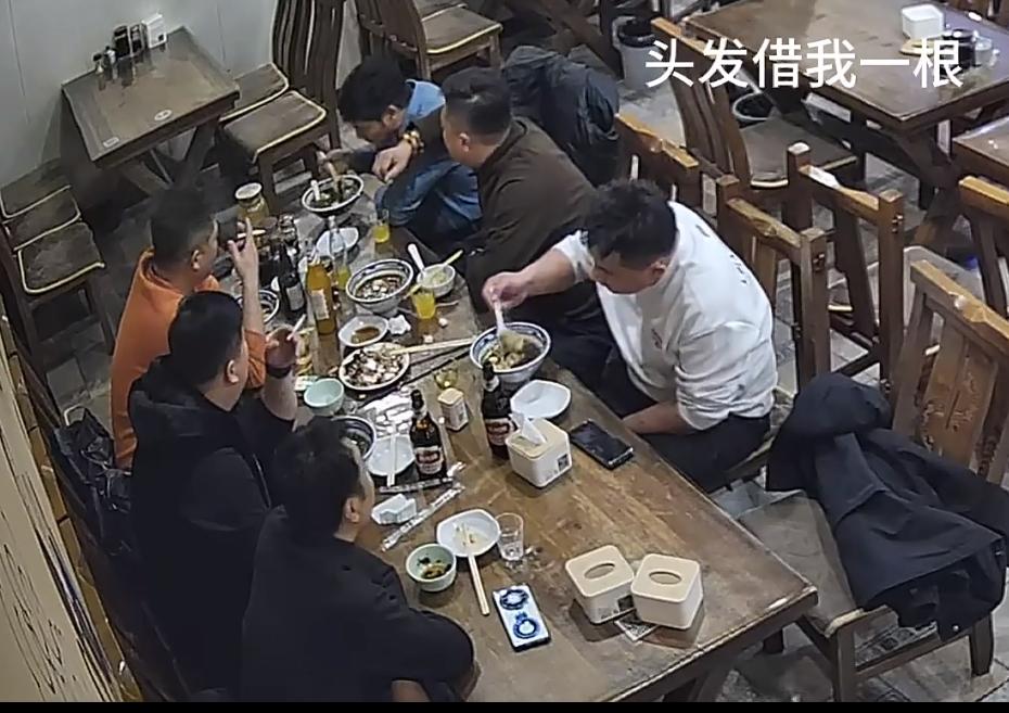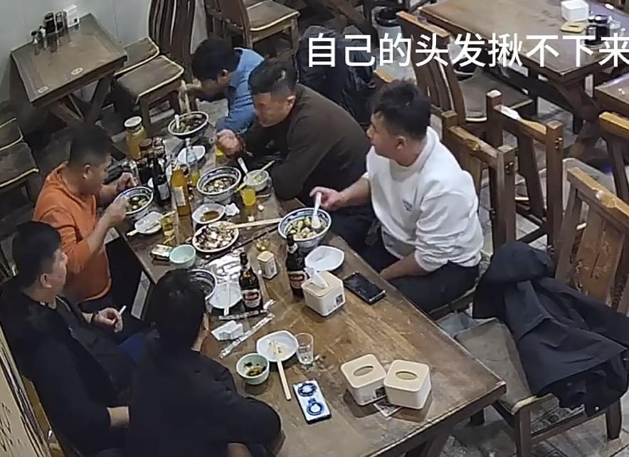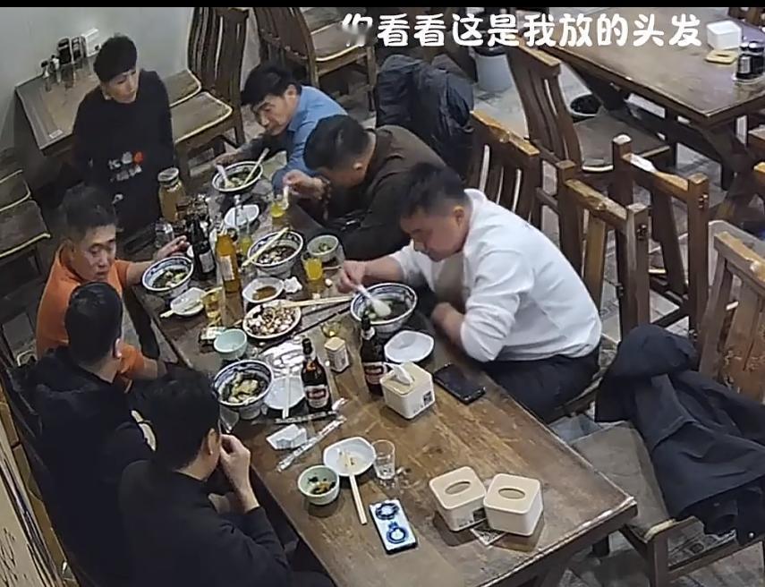 北京6个大男人吃饺子,一人揪同伴的头发丢碗里,其他5人配合表演,找餐馆老板索赔、免单,真的长见识了,看着这些人模狗样的中年男人也开始玩这种不要脸的把戏。6个人吃的饺子、小菜还有啤酒,目测不会超过300块钱,桌上摆的手机也是那种高端货,连区区300块都要讹诈店家,真的是无耻、缺德到极点。