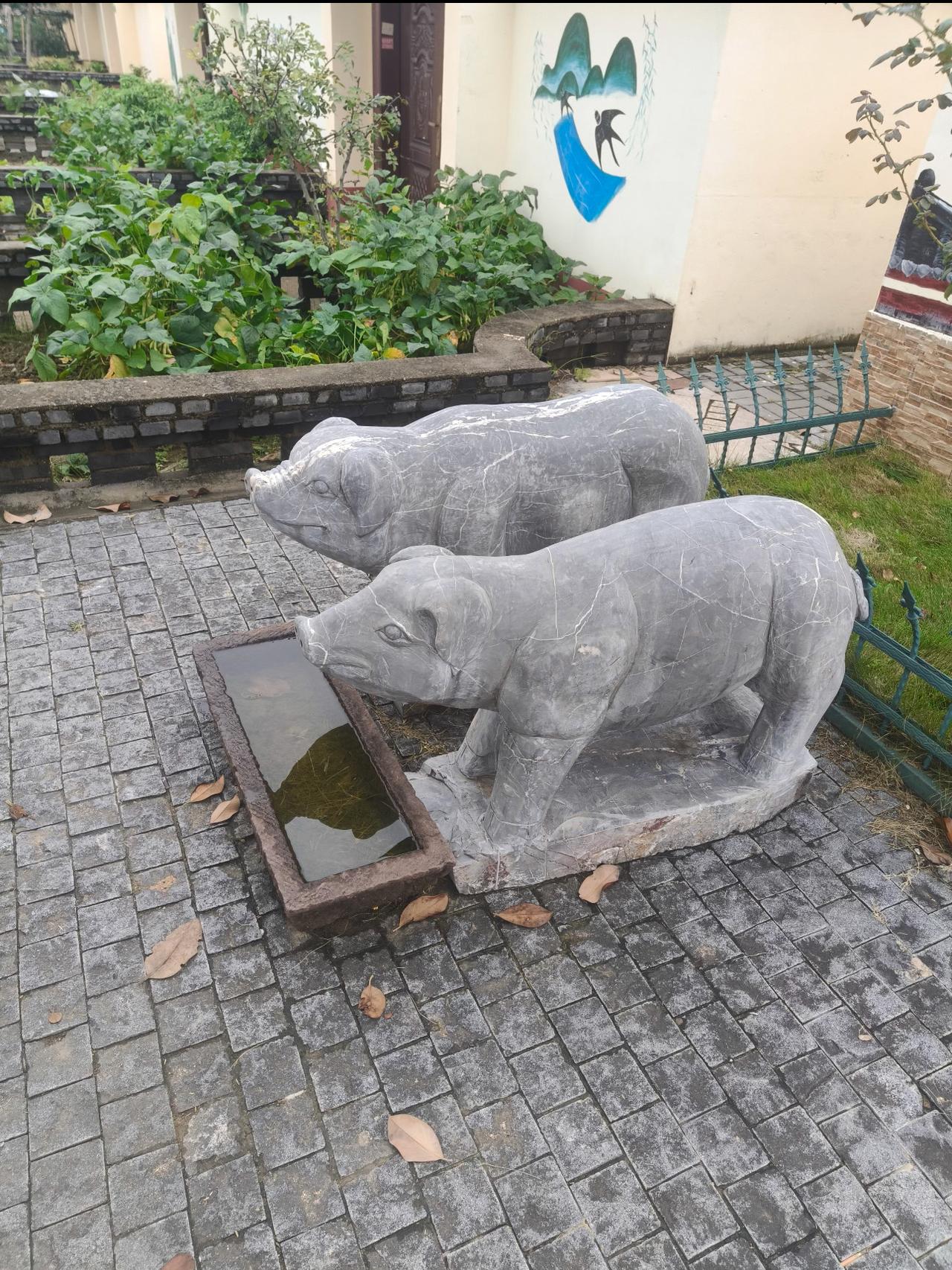 有网友打卡了刘强东的老家,远近闻名的刘家大院,这院子整的可真气派,一看就没少砸钱。 不过这大门明显是中式风格,里面的小洋楼却是偏西式的,好一个“中西结合,融会贯通”。 最为搞笑的是,一般人家都拿狮子和麒麟做雕像,而东哥在院子里整了两座猪的雕像,前面还有一个吃饭的石巣,这未免也太接地气了。