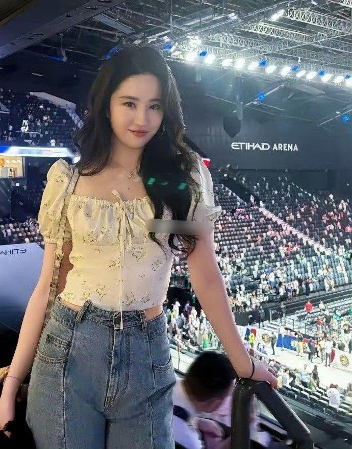 刘亦菲这条裤子挺养生,毕竟降温了肚脐眼必须护住啊