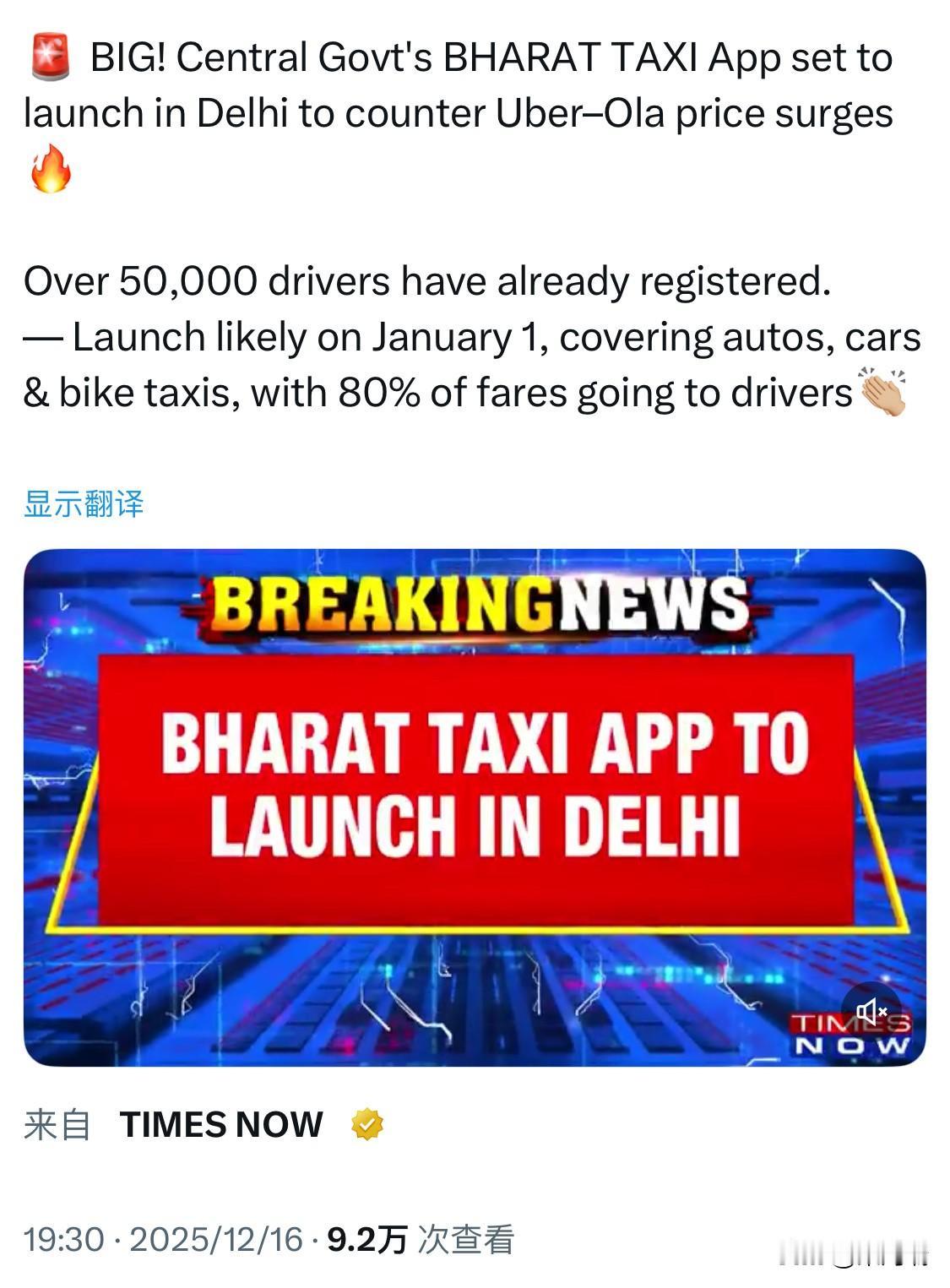 印度中央政府支持的“Bharat Taxi”(印度出租车)应用程序将于2026年1月1日在德里推出,旨在解决Uber和Ola等私人聚合平台的高峰时段溢价问题。该服务采用合作社模式,使司机能够保留大部分(超过80%)车费收入。 主要特点 反溢价收费:该应用旨在提供稳定的票价,并通过限制动态定价(高峰时段最高为国家规定基础票价的两倍)来保护通勤者免受不可预测的激增价格影响。 司机赋能:该平台实行“零佣金”模式,允许司机保留其全部收入,合作社的利润也将直接分配给司机,从而提高他们的收入和独立性。 服务范围:该服务将涵盖自动人力车、汽车和摩托车出租车,提供多种交通选择。 用户与安全:该应用提供用户友好的预订、实时车辆跟踪、多语言支持和24/7客户服务。安全功能包括与德里警方的整合、经过验证的司机入职流程以及分享行程详细信息的能力。 高注册率:在正式推出之前,德里已有超过5万名司机在该平台上注册。 该应用程序目前处于测试和试用阶段,已经在德里国际机场通过预付费出租车亭进行了软启动。