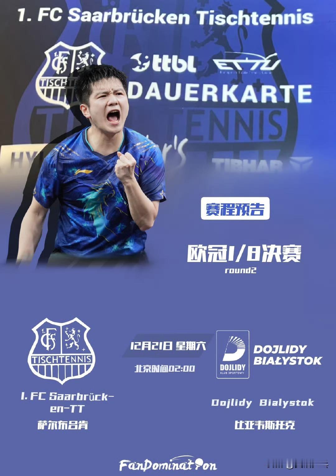 🏓【20251217】【赛事预告】乒乓球欧冠联赛 🔸12.20 北京时间02:00 萨尔布吕肯 vs 比亚韦斯托克 欧冠1/8决赛 樊振东加油[给你小心心][给你小心心][给你小心心]萨尔布吕肯加油[碰拳][碰拳][碰拳] 2025.12.17