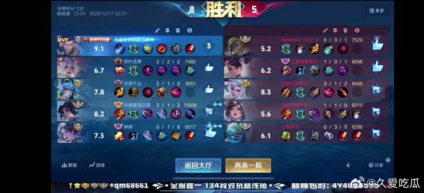 巅峰撞车记录|1217妖刀向鱼星尘瓜友们晚安