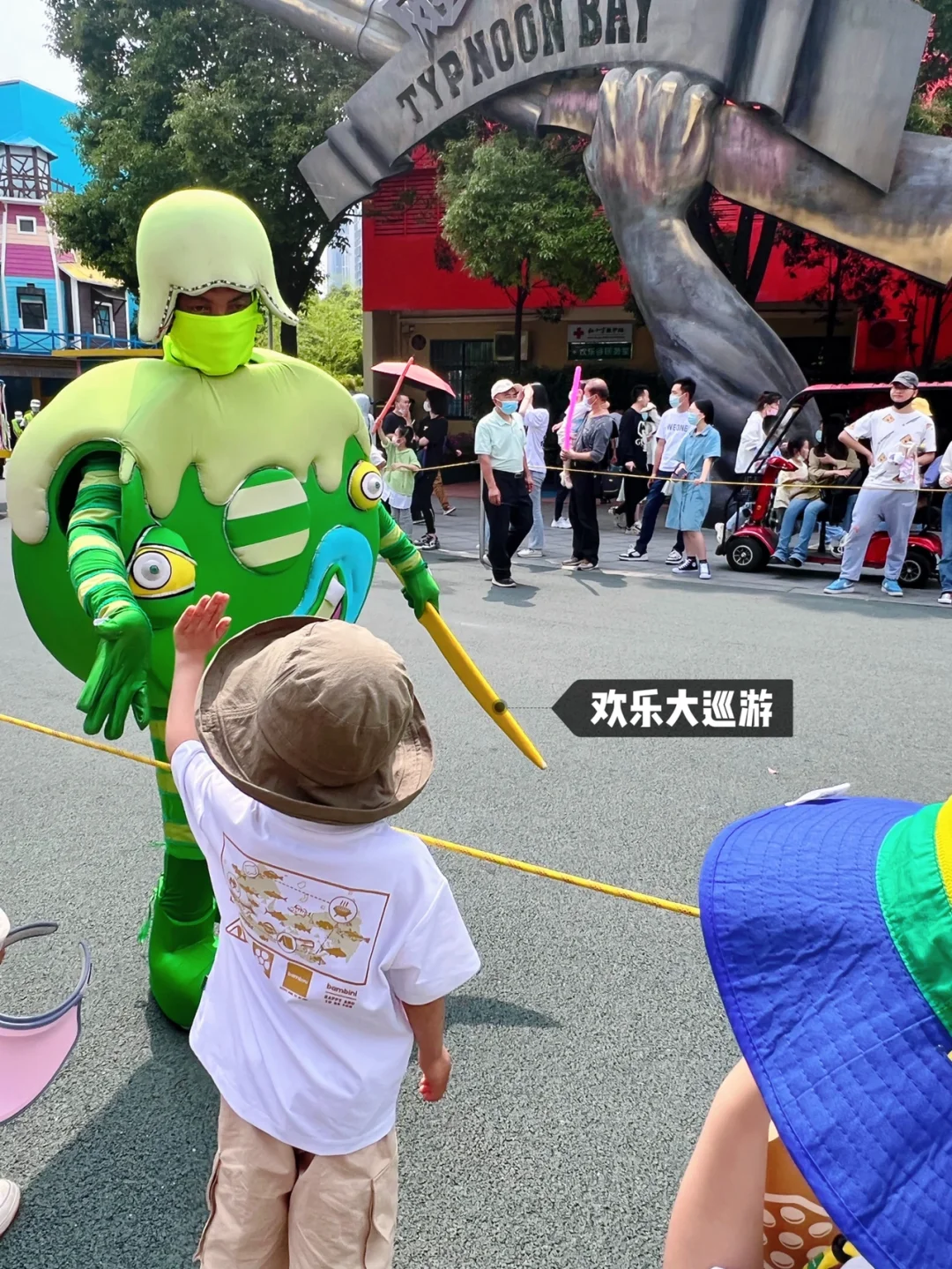 这次巡游的都是三大IP的故事角色,cos人物都会来跟我们互动击掌,黑猫警长跟我儿子击掌了