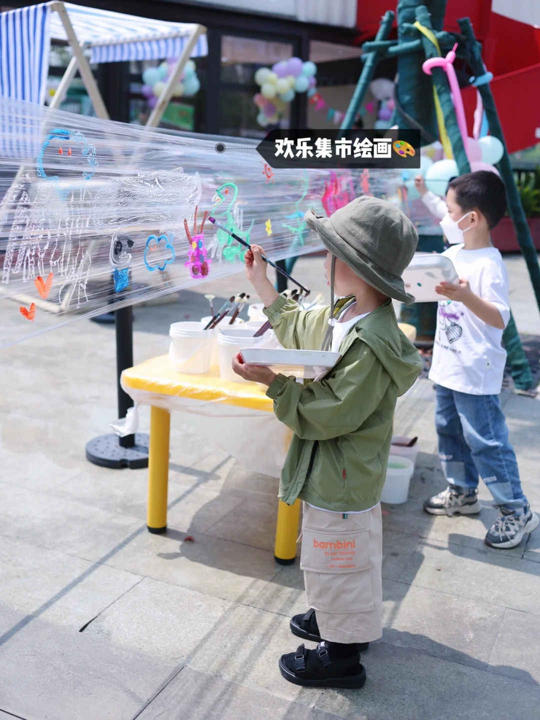 就在水舞台旁边,有粘土、绘画、涂鸦,带小朋友们来感受一下美术互动市集也很不错