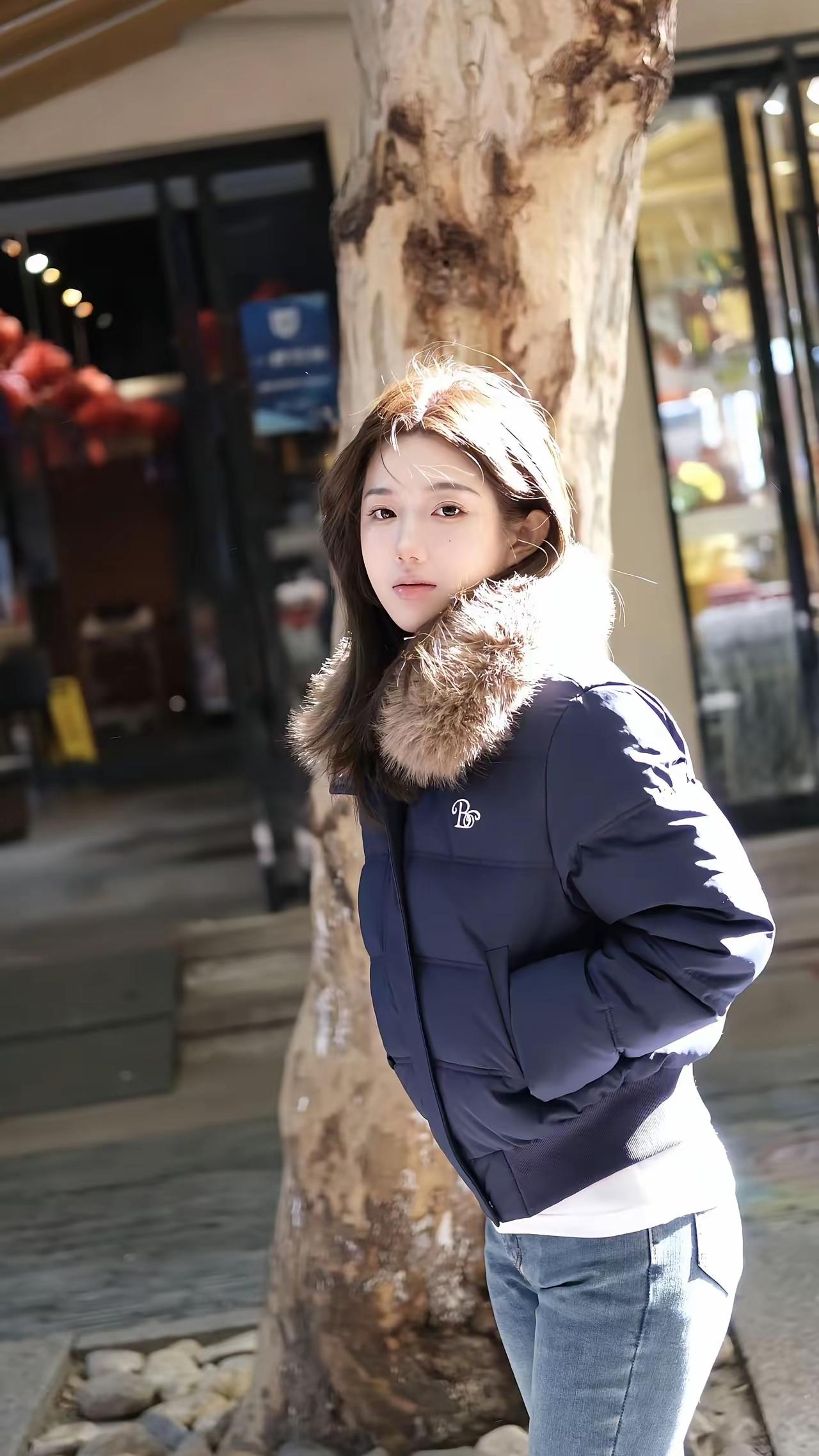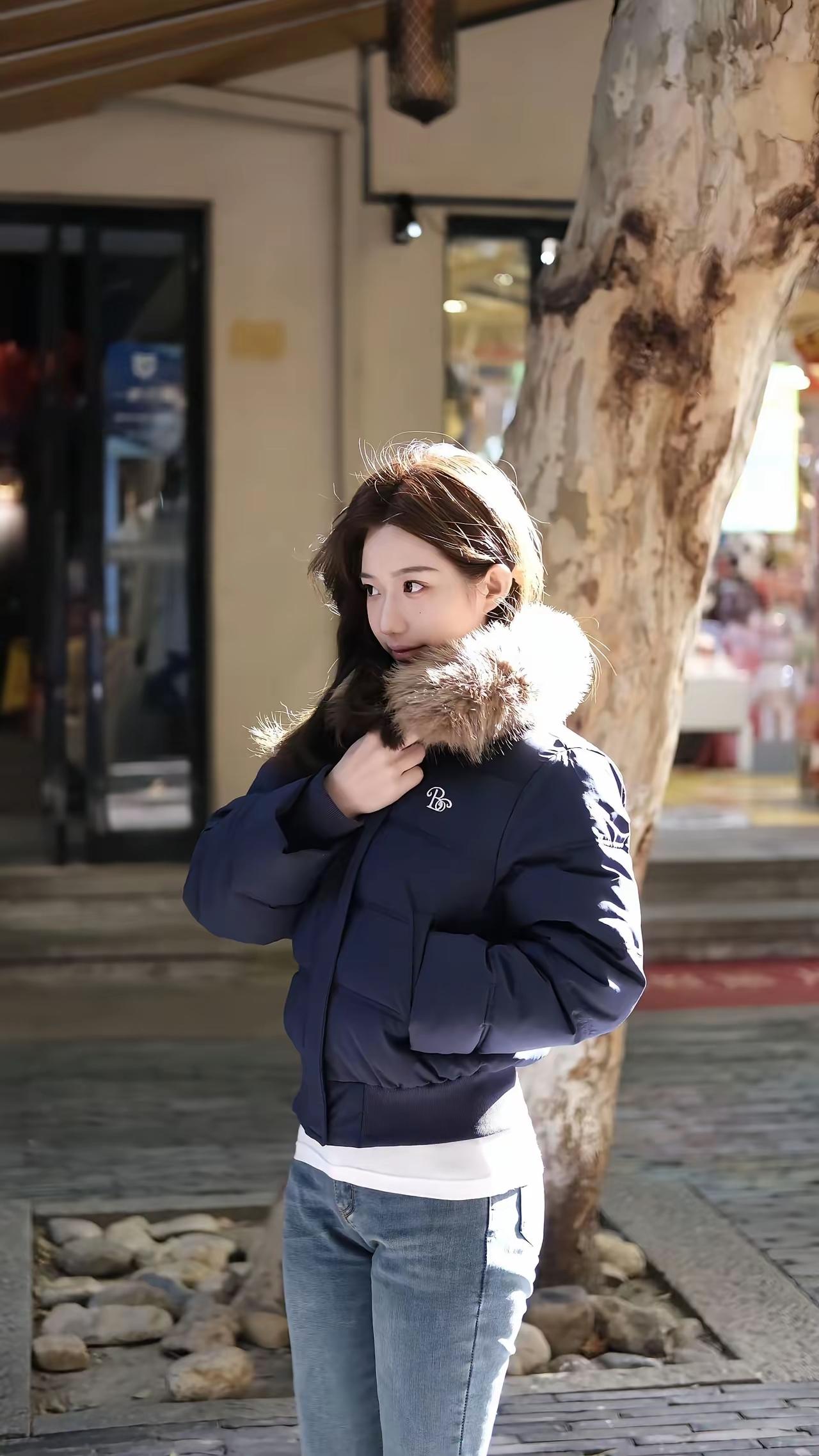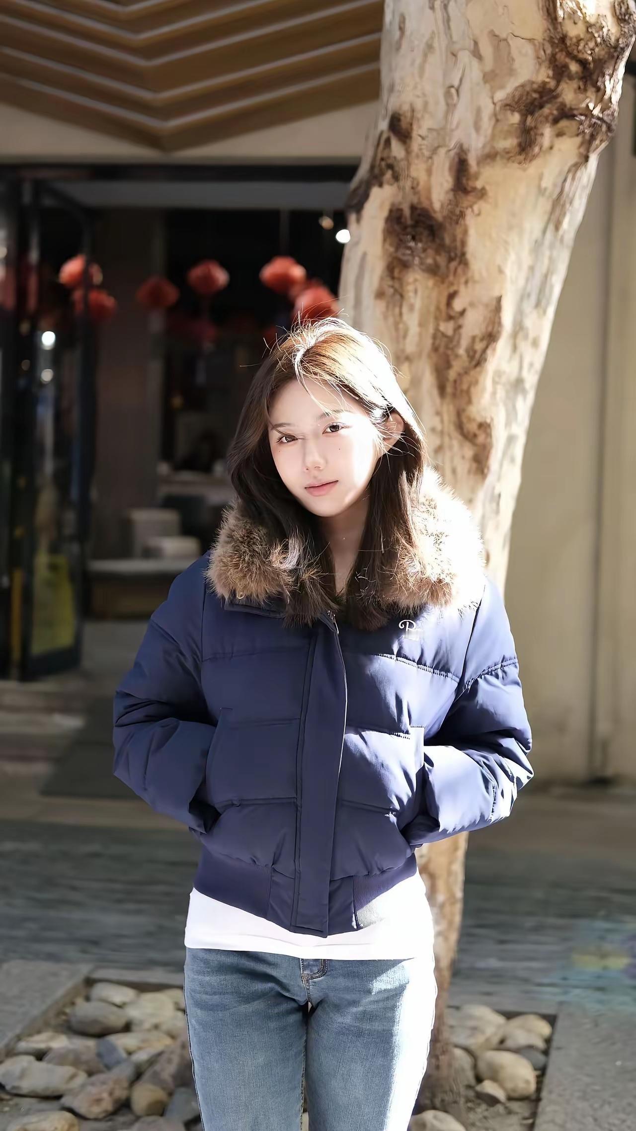 阳光明媚风和日丽,冬季穿搭,羽绒服+牛仔裤,保暖又显身材,时尚靓丽活泼可爱