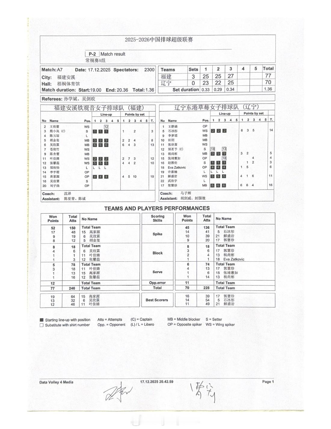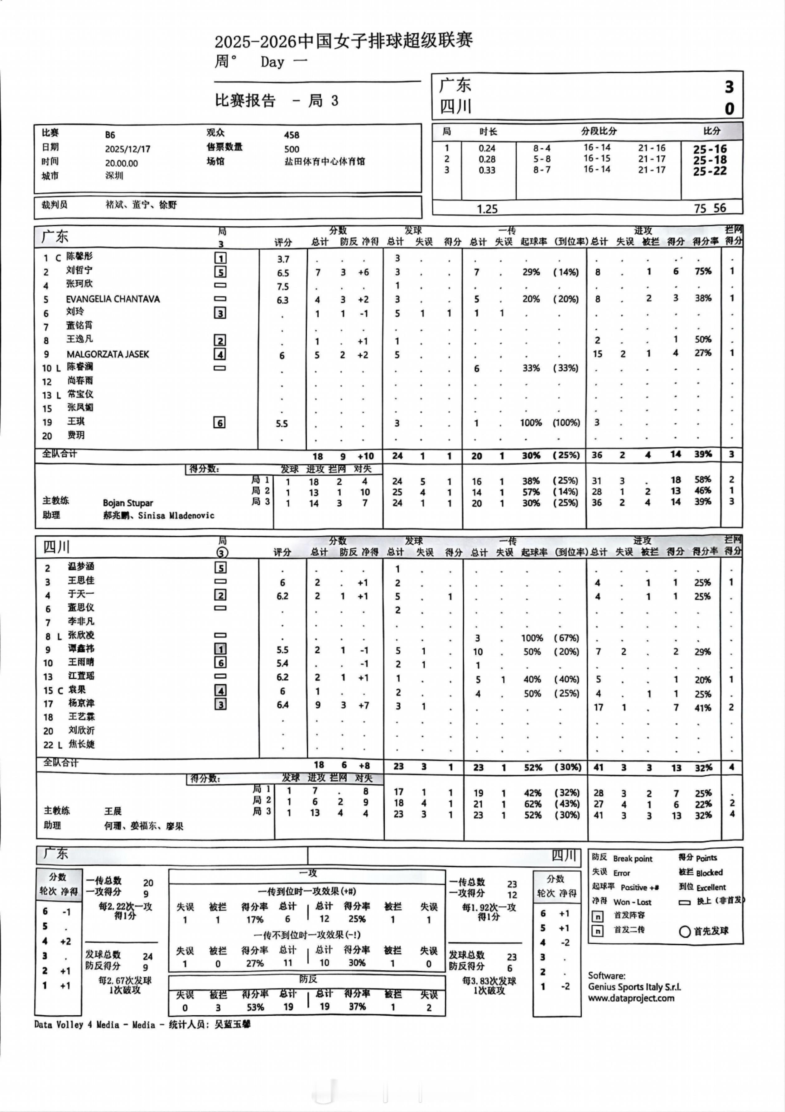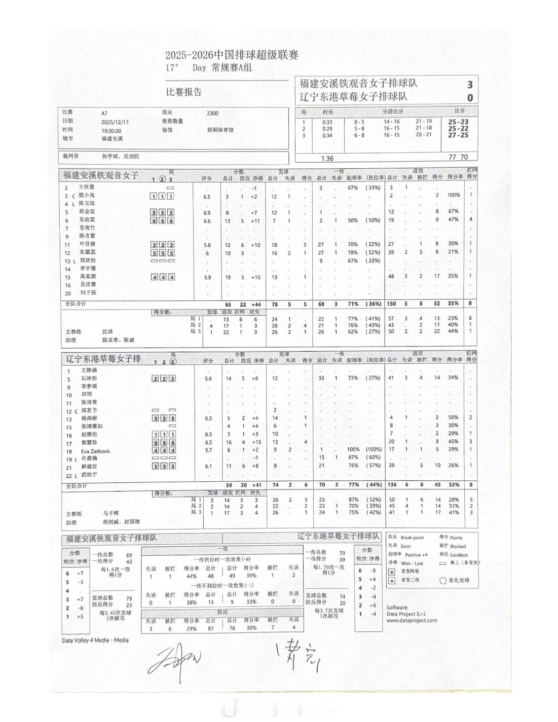排超联赛 12月17日,女排联赛三场比赛技术统计。