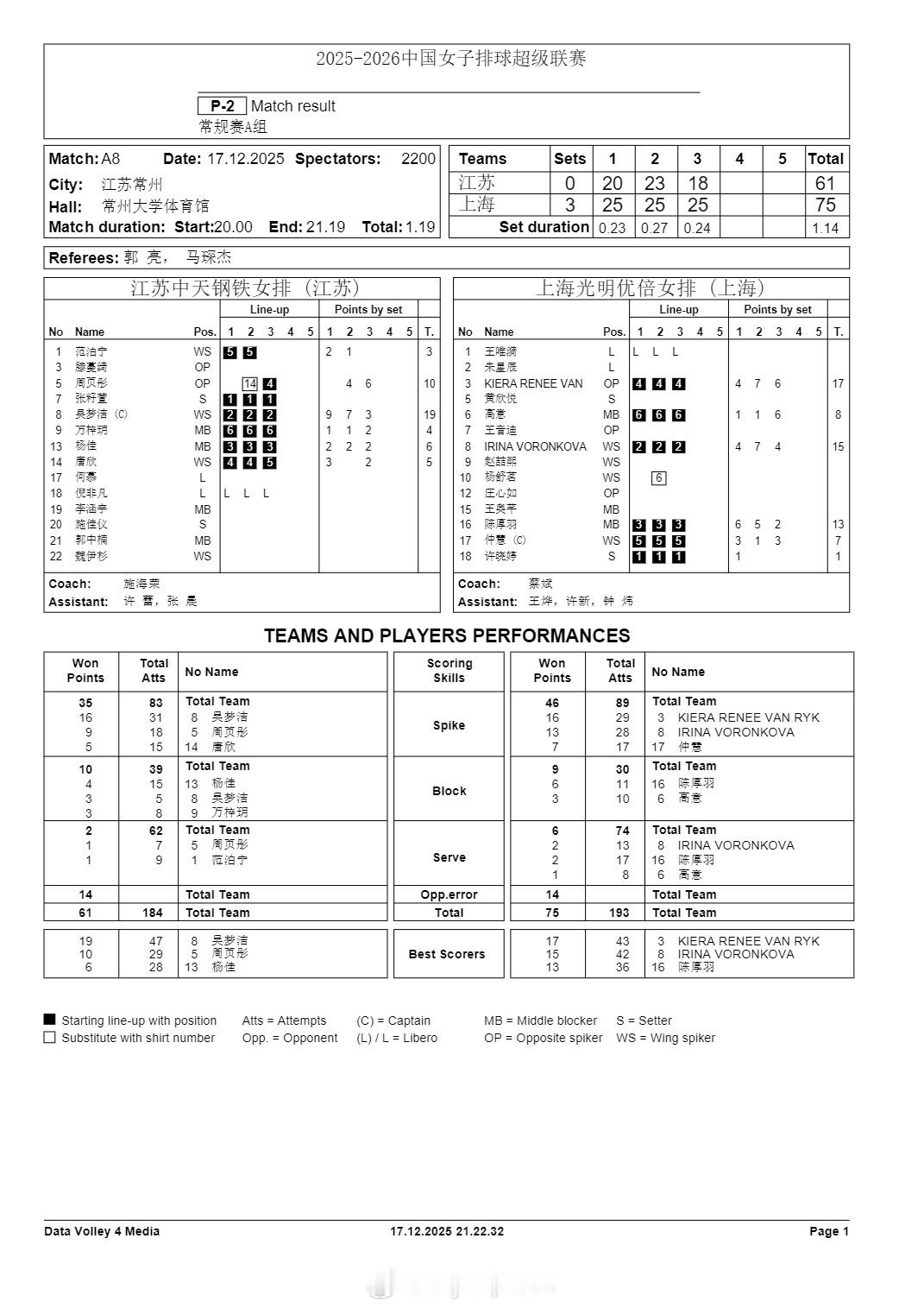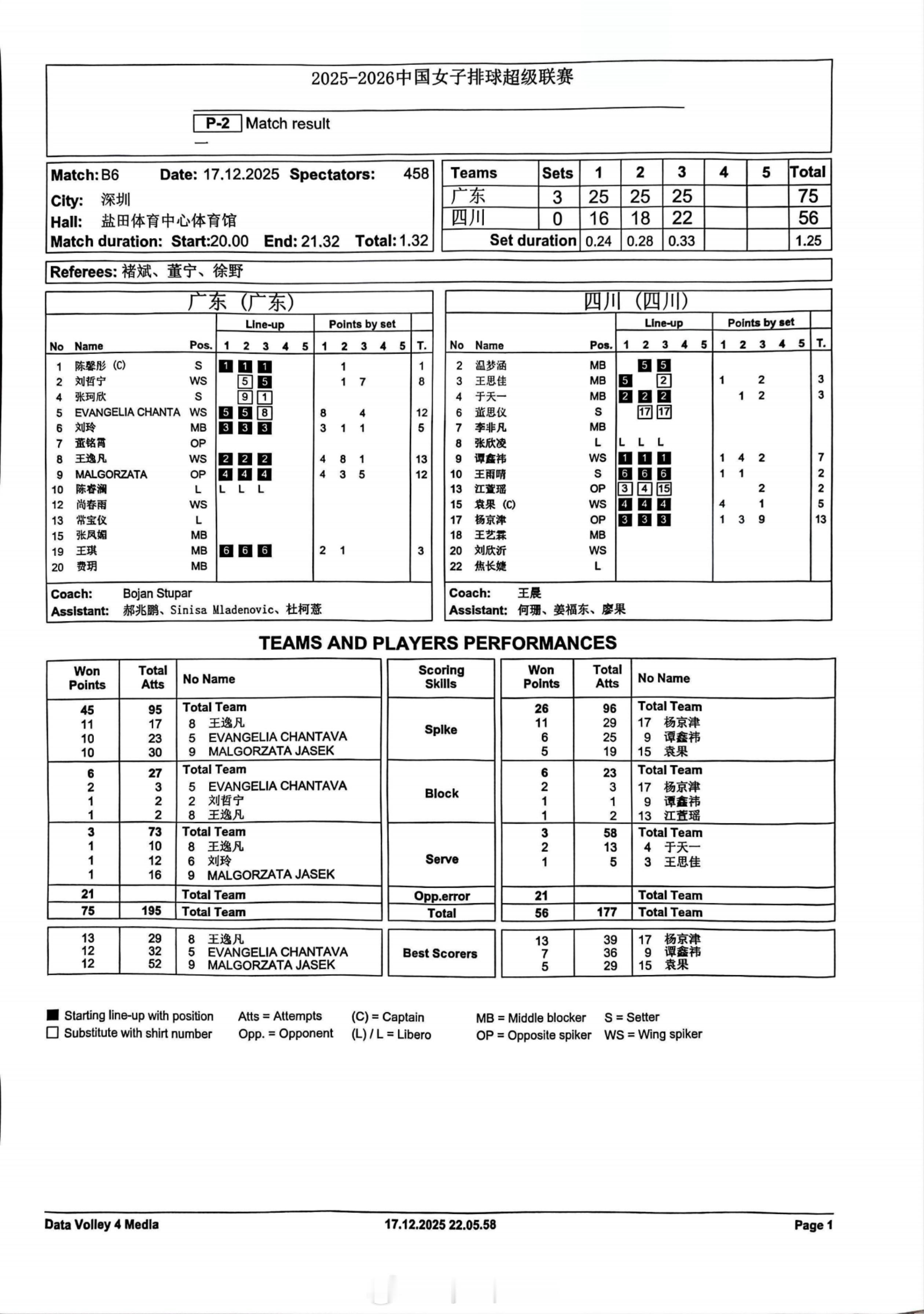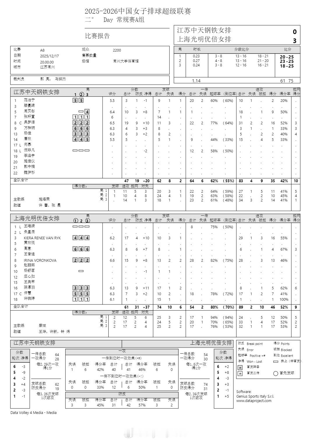 排超联赛 12月17日,女排联赛三场比赛技术统计。