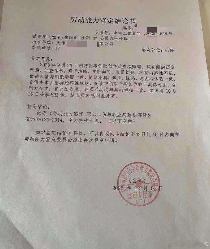 遭老板性侵女高管每月心理治疗费4000 经过漫长的等待,崔丽丽终于迎来了法律上的“伤残等级”认定——十级伤残。这标志着职场性侵所造成的精神创伤,首次被法律正式纳入工伤保险的保障范围,堪称从0到1的突破。然而,这并非终点,崔丽丽的维权之路依然充满挑战。崔丽丽对劳动能力鉴定结论表示认可 此次工伤认定为十级伤残,对于崔丽丽而言,是法律对她所遭受的精神创伤的承认,也意味着她因公受伤,公司对此负有责任。她计划接下来申领工伤的一次性赔偿,包括公司支付的一次性伤残就业补助金,以及社保支付的一次性医疗补助金和一次性伤残补助金。但具体由哪个主体承担各项补助金,以及如何衔接,仍需与法院、社保部门进一步沟通确认,过程相当复杂。目前,崔丽丽每周仍需接受心理治疗,每月花费高达4000元。她指出,在社保断缴期间产生的医疗费用,本应由公司承担,而非工伤保险基金。这不仅是经济上的负担,更是对公司责任的追问。崔丽丽被评定为工伤十级伤残尽管取得了法律上的进展,崔丽丽仍然面临网络上的纷扰和恶意攻击。“网暴依然存在”,她无奈地表示,并尽量避免关注网络评论以专注于治疗。但她态度坚决,对于恶意造谣诽谤,将拿起法律武器追究责任,这不仅是为了自己,也是为了支持她的人。崔丽丽的“战争”还在继续,她的经历值得我们深思,也希望她的坚持能够为更多身处困境的职场女性带来希望和力量。