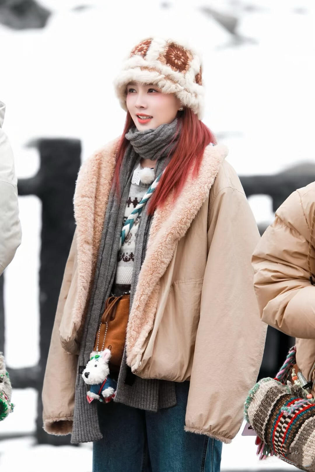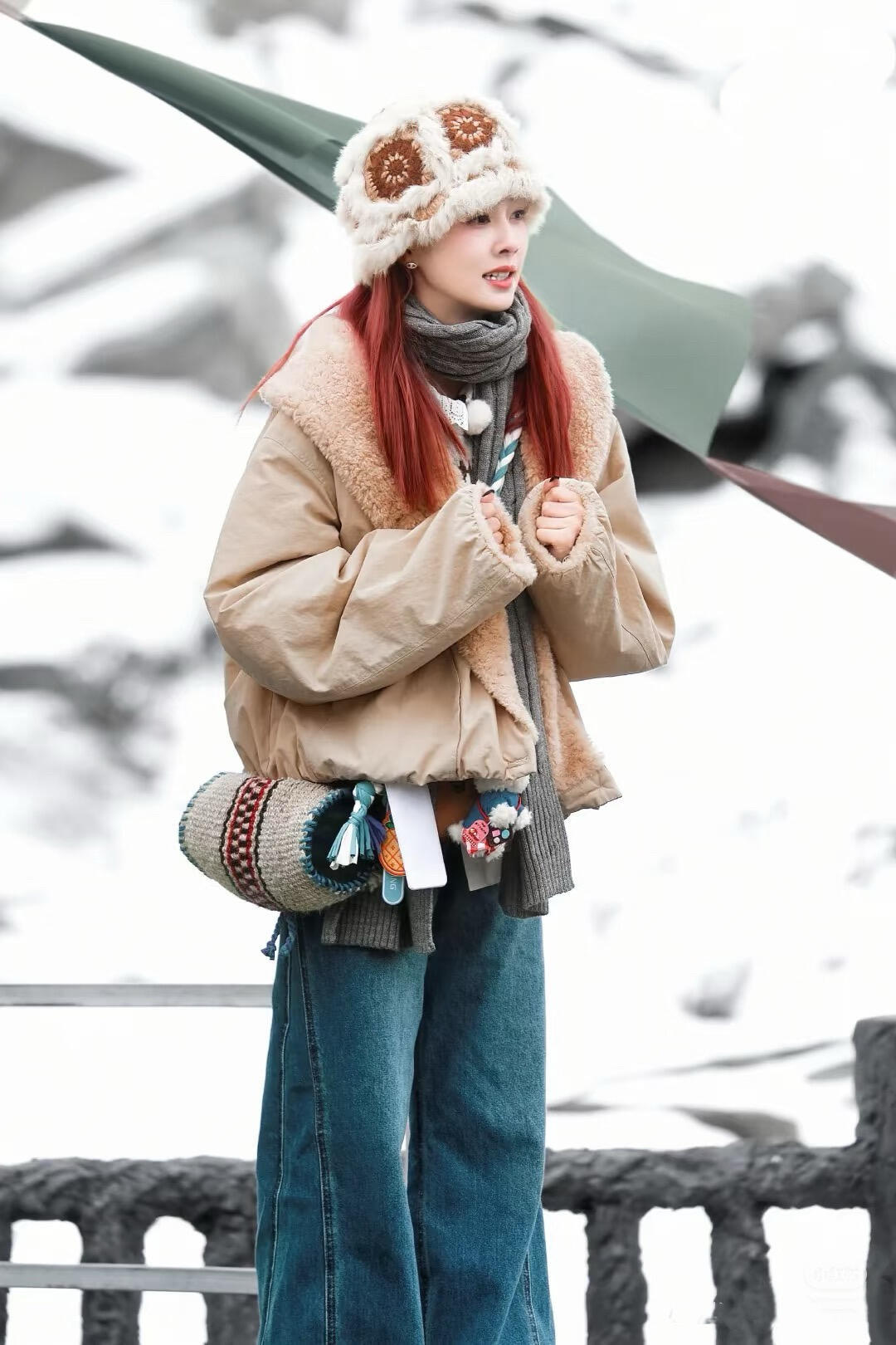白鹿风格大赏softcore 那期西藏《奔跑吧兄弟》,白鹿的Softcore柔式美系叠穿超吸睛,白衬衣叠搭针织马甲与毛毛外套,层次满满;刺绣牛仔裤甜酷兼具,棒球水桶包配狗狗挂饰添趣味,秋冬氛围感直接拉满。