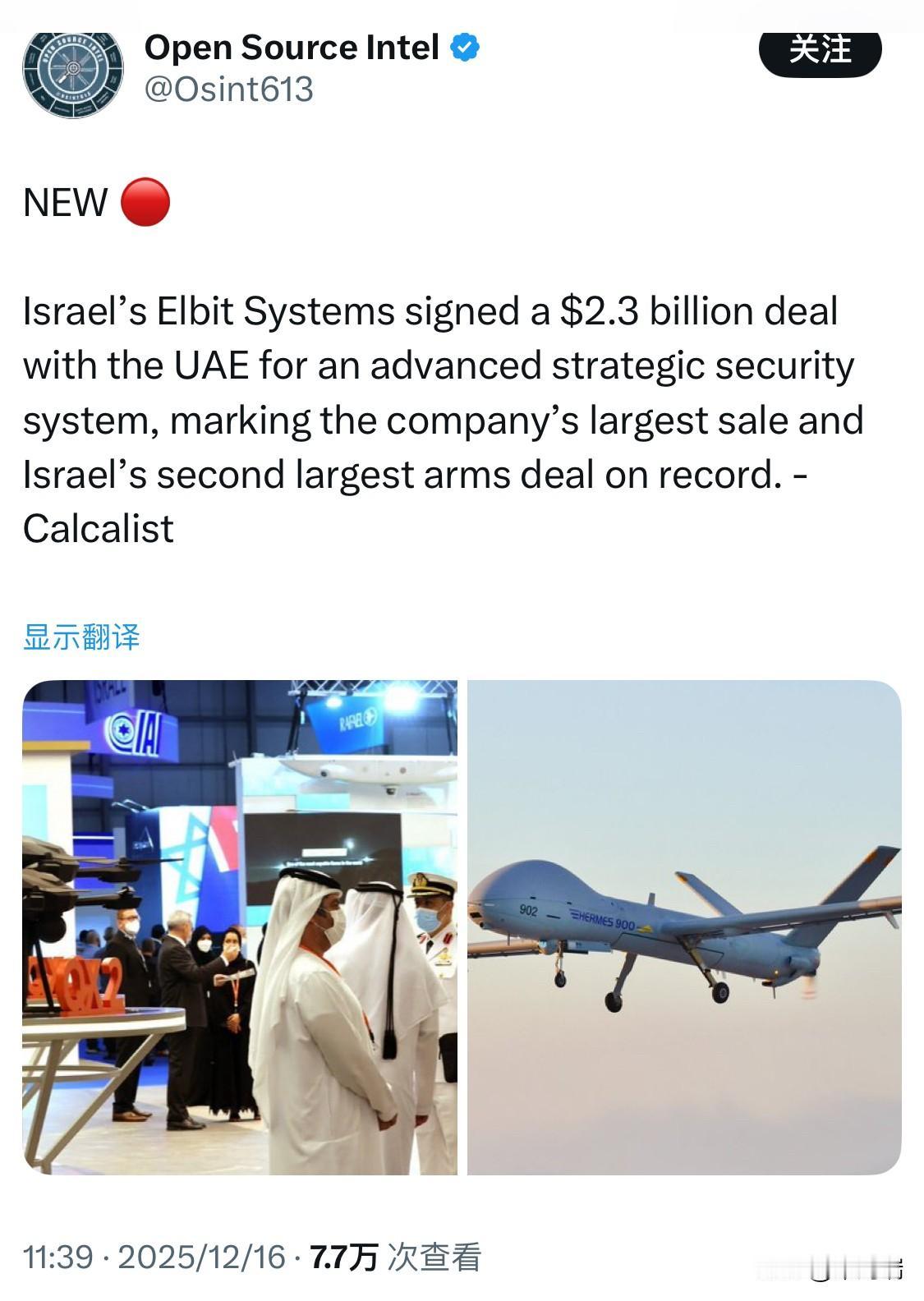 以色列国防公司埃尔比特系统(Elbit Systems)与阿拉伯联合酋长国(UAE)签署了一项价值23亿美元的战略安全系统协议,这是埃尔比特有史以来最大的单笔销售合同,也是以色列有记录以来的第二大军售交易。 交易细节 买方: 阿拉伯联合酋长国(UAE),身份曾处于保密状态。 卖方: 以色列国防电子公司埃尔比特系统。 金额: 约23亿美元。 内容: 该交易涉及一个“战略安全系统”,基于“独特且突破性的技术”。尽管具体系统细节被禁止披露,但据报道称可能包括赫尔墨斯900(Hermes 900)无人机、精确制导火箭系统(PULS)、电子战工具以及指挥控制系统等综合解决方案。 期限: 合同将持续约八至十年。 背景和影响 该协议是在两国根据《亚伯拉罕协议》(Abraham Accords)实现关系正常化约五年后达成的。 该交易的保密性是阿联酋提出的条件,任何细节的泄露都可能导致交易无效。 有分析称,由于该系统的先进性,这笔交易可能会侵蚀以色列在中东的军事优势。 此次军售正值美国出于对技术泄露给中国的担忧,而延迟向阿联酋出售F-35战斗机之际。