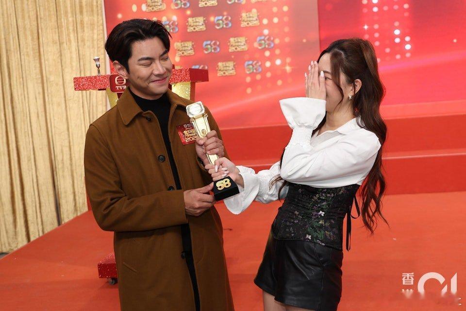 《萬千星輝頒獎典禮2025》即將舉行,日前(15日)公布入圍名單,入圍「最佳男配角」的羅天宇(Joey)與入圍「最佳女主持」的陳懿德(Rachel)盛裝亮相為頒獎典禮造勢。這對「緋聞情侶檔」接受《香港01》訪問時,雖然被問到是否為「情侶檔」時堅決否認,但二人在鏡頭前互動親密,互窒對方歌喉,為現場增添不少歡樂氣氛。日前播出的《中年好聲音4》中,有一段「獅子王」唱歌的片段播出,不少網民憑聲線猜測到面具後的人就是羅天宇,但羅天宇卻堅決表示不知道是誰。羅天宇表示自己收到很多信息,都表示「獅子王」就是他,而陳懿德亦指自己收到不少信息,被問到「獅子王」是否就是羅天宇。至於羅天宇被問到「獅子王」唱成怎樣時,他笑指:「唱得OK啦,我唱得好啲囉」。陳懿德聽罷立刻反擊:「我個獅子唱得好過你!」她表示自己沒能仔細看過那段影片,但承認的確收到不少訊息問「係咪你嚟㗎?」雖然羅天宇自認唱得更好,但陳懿德毫不示弱:「我覺得獅子唱得好過你!」羅天宇則堅持:「我覺得你唱得最好!我聽過你唱歌,你又唔參加?」談到兩人未來是否有機會公開合唱,陳懿德表示,他們私下在劇集拍攝期間曾互相給予唱歌意見,但確實還沒有一個公開場合能夠讓二人合唱,期待未來會有機會。訪問中,陳懿德提到自己憑藉《聲秀》入圍「最佳女主持」獎項,心情忐忑。她坦言,看到名單上全是資深的前輩,自己屬於「年資最短嗰個」,獲獎信心不高,但能與阿姐(汪明荃)等前輩同列一個名單,已經感到非常滿足和榮幸。陳懿德將參與《聲秀》主持視為一個重大成長機會,她表示這次的經歷讓她從單純專注於個人風格,轉變到積極參與各部門工作,從寫稿、音響到與導師學員溝通,學習到更多協調與合作的技巧。她稱這次主持是一個「打大佬」的過程,相信能讓她成為更謹慎、更沉穩的主持人。羅天宇則對陳懿德的努力讚不絕口,他認為主持一場大型Live Show是極具挑戰性的任務,對她的努力和表現感到欣賞,更稱讚她「好勤力,好欣賞佢」。談到投票,陳懿德表示雖然自己獲獎機會不高,但衷心希望大家能投票支持《聲秀》奪得「最佳綜藝節目」,因為這是眾人用心、合力製作的一個重要節目。羅天宇也附和說,知道大家會將第一票投給心中所屬的演員或節目,但希望大家在投完第一票後,「第二、三票就可以諗下我哋啦」,同時也呼籲大家踴躍支持陳懿德主持的節目。