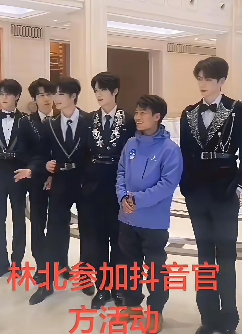 很多人看到这张图, 第一感觉都是, 林北咋被衬托的像个丑小鸭, 可我感觉这更像是 鹤立鸡群! 因为这么一大群人, 我一下子就注意到了林北, 鲜花需要绿叶的衬托, 这几个帅哥, 硬生生的成了背景板, 你可以关掉图片试试, 哪怕你不认识林北, 肯定对里面他的印象最深,