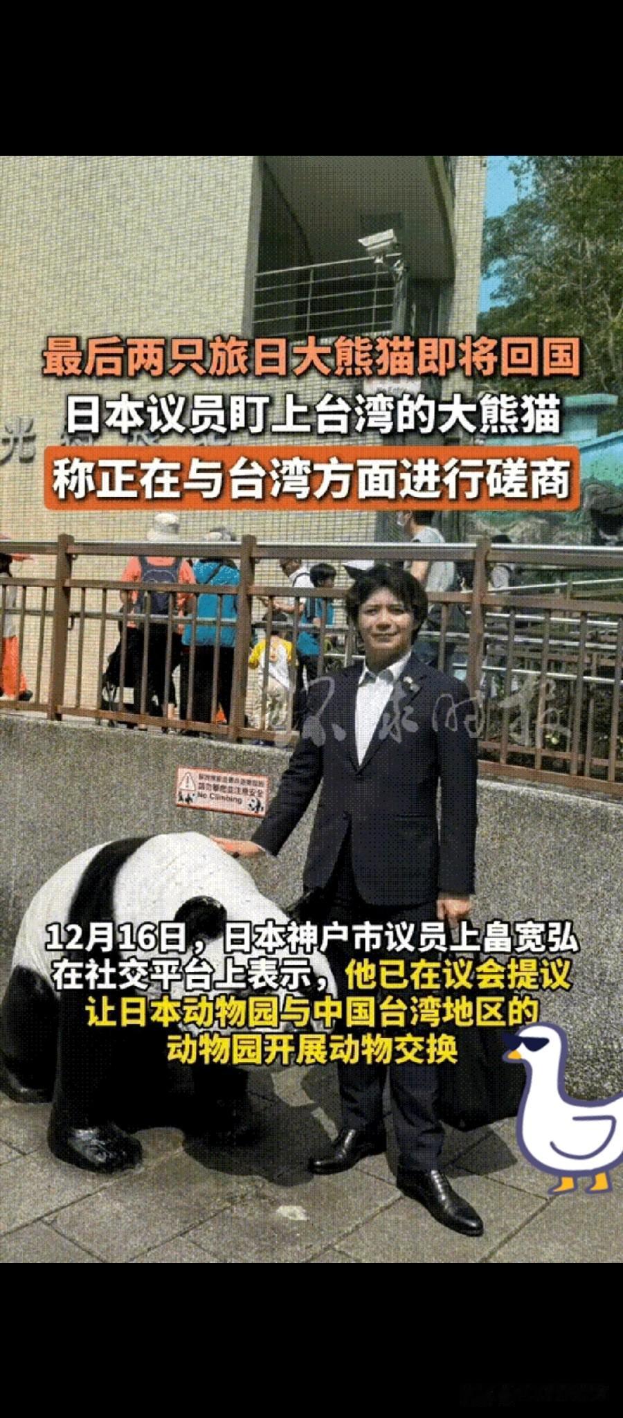 天啦你这么敢这样想 上畠宽弘的这个提议完全是无视一个中国原则的政治操弄,根本不可能得逞。 首先,台北动物园的大熊猫“团团”“圆圆”及其后代本就是大陆赠予中国台湾地区的礼物,这是两岸内部的友好互动,属于中国内政范畴,绝非能供所谓“日台”之间做交换的筹码。而且依据相关约定,这些大熊猫的所有权本就归属于中国大陆,台湾地区根本没有处置权。 其次,他刻意强调熊猫是“赠送而非租借”,真实目的是想把台湾包装成独立的交换主体,制造“一中一台”的假象,这种触碰中国核心利益的行径,必然会遭到全体中国人民的坚决反对。另外,国际间大熊猫交流有明确规则,日方若真想引入大熊猫,只能通过正规渠道与中国大陆相关机构协商,而非和中国的一个省级行政区私下“磋商”。 再者,当前日本只剩两只大熊猫且即将返华,该国正面临“无熊猫时代”,上畠宽弘此时抛出该提议,大概率是想借民众对熊猫的不舍情绪转移注意力,同时试探中国在台湾问题上的底线。这种拿熊猫当政治工具的算计,既破坏了两岸对熊猫的情感联结,也会进一步伤害中日关系,最终只会是徒劳无功。 台湾大熊猫 大熊猫璨阳 大熊猫宽宽