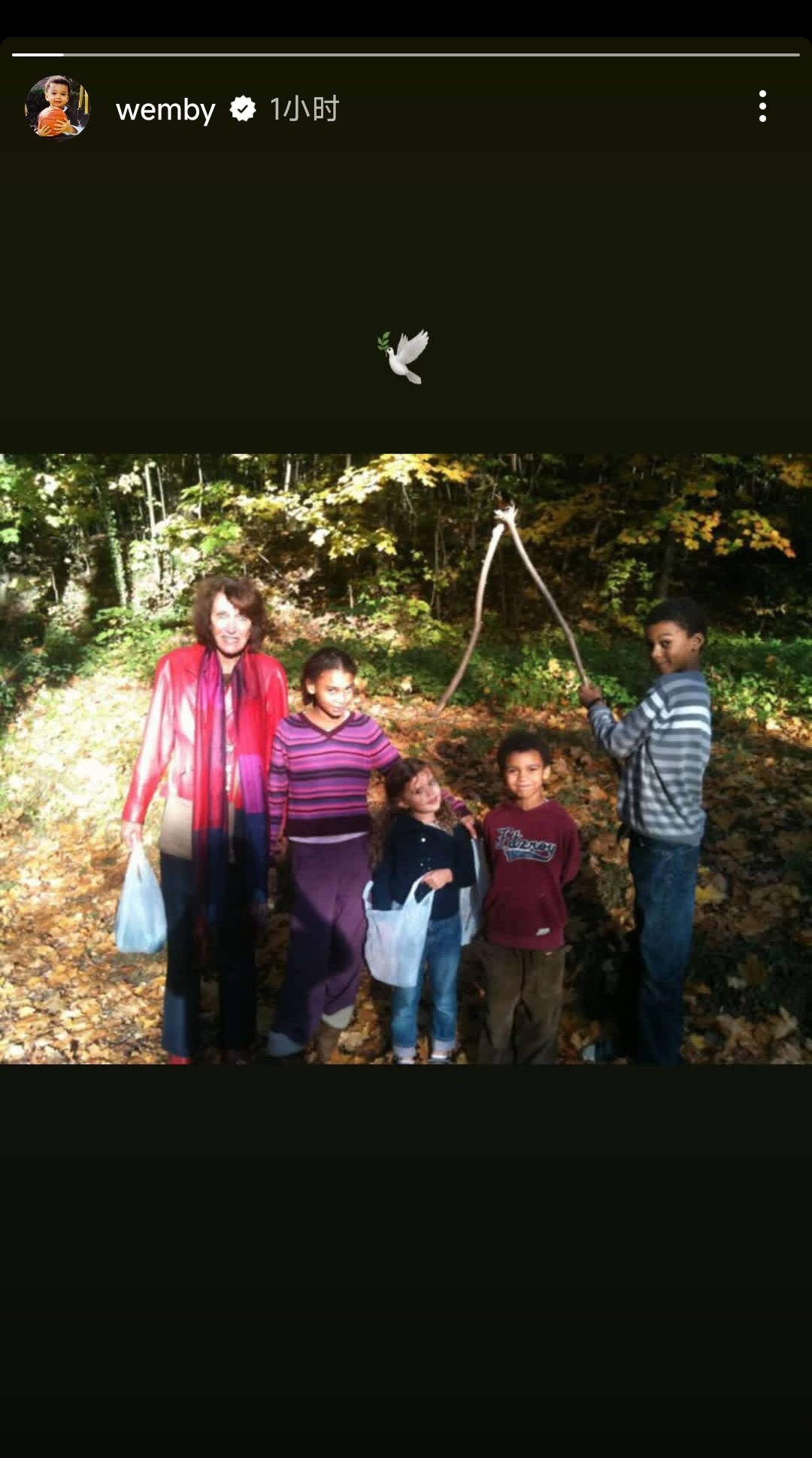 文班亚马ins上分享了一张照片以此悼念刚刚去世的祖母:“🕊”