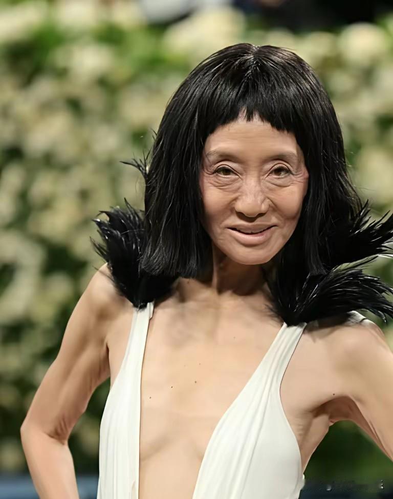 这是王薇薇为自己设计的礼服吗? 王薇薇身上穿的礼服是她为自己设计的吗?低胸低到肚脐眼处了,配上她干瘪的身材,满脸的皱纹,75岁的她依然在国际时装T台上展现自己。大家觉得怎样?